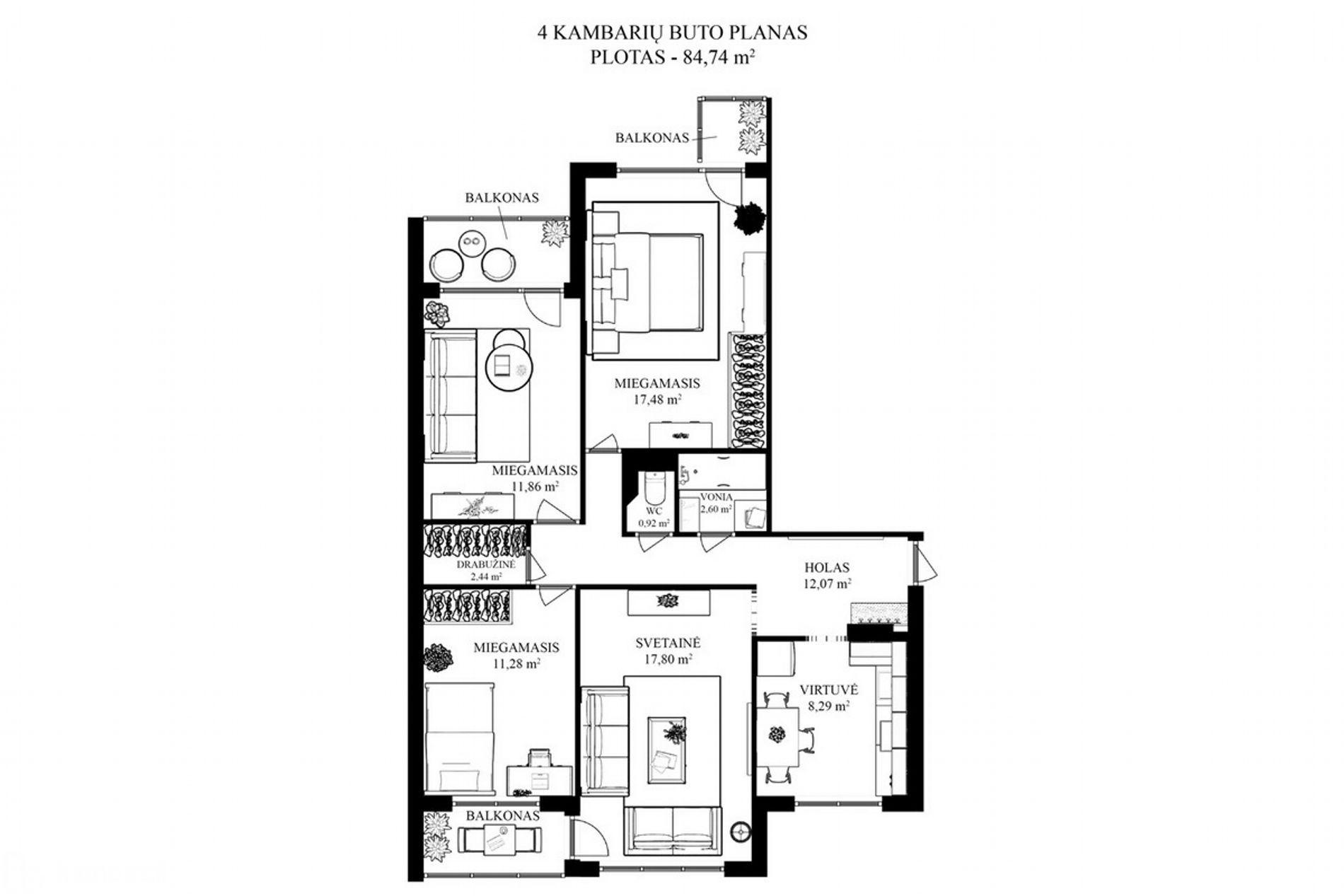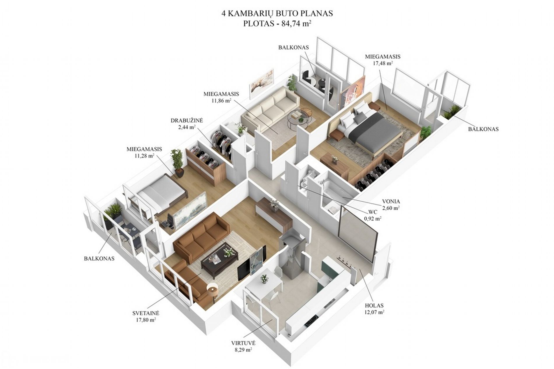 - Patogus buto išplanavimas: erdvi svetainė, atskira virtuvė, jaukūs miegamieji, drabužinė, 3 įstiklinti balkonai;