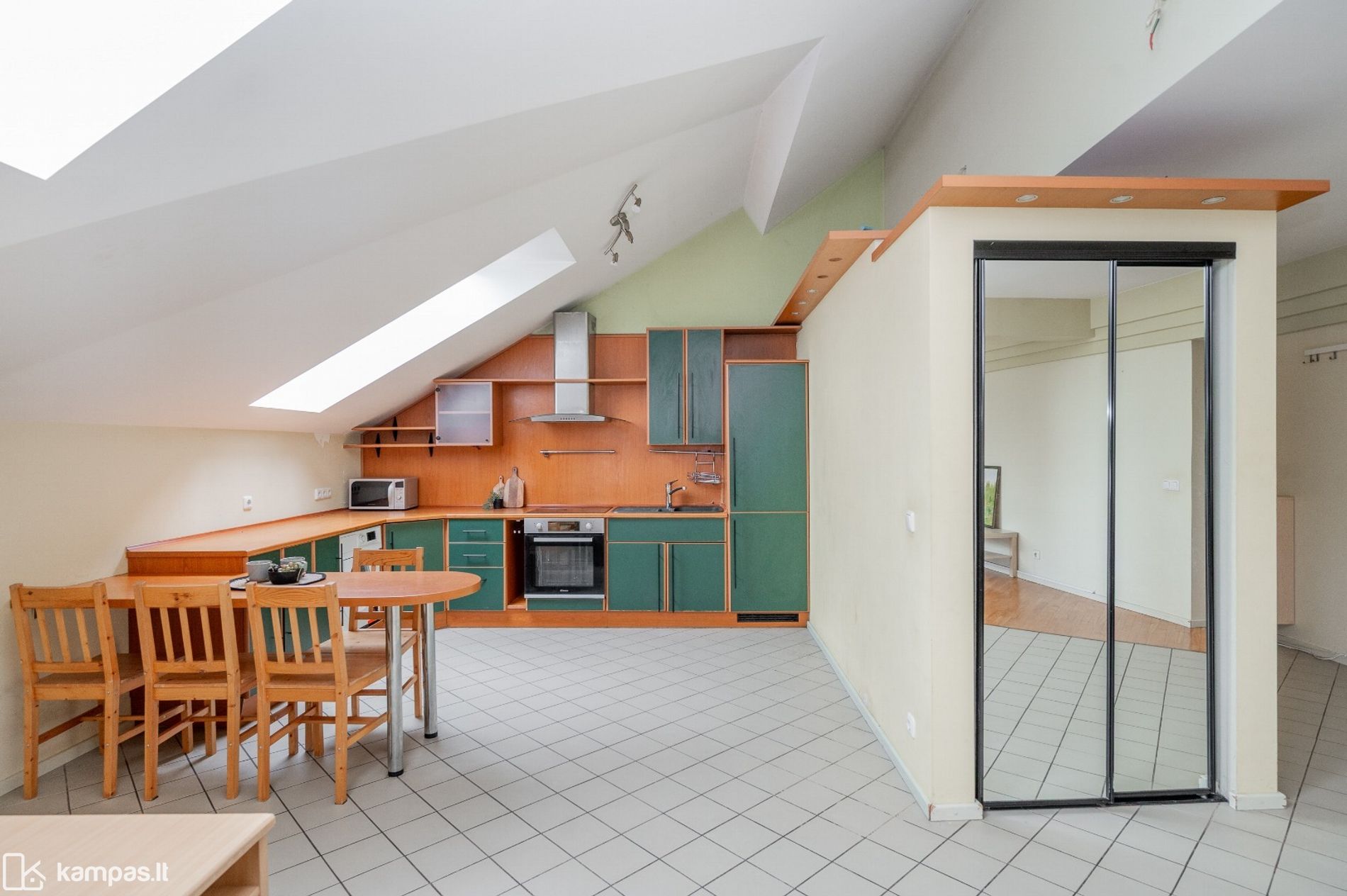 • Yra išskirtinai didelė virtuvės ir svetainės erdvė