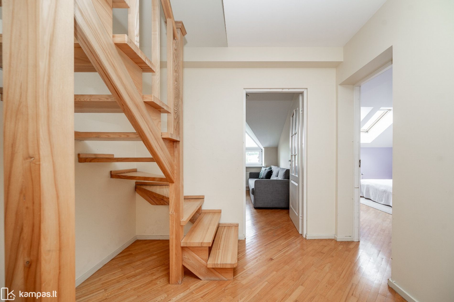 • Grindys: natūralaus medžio parketas (būklė – vidutinė)