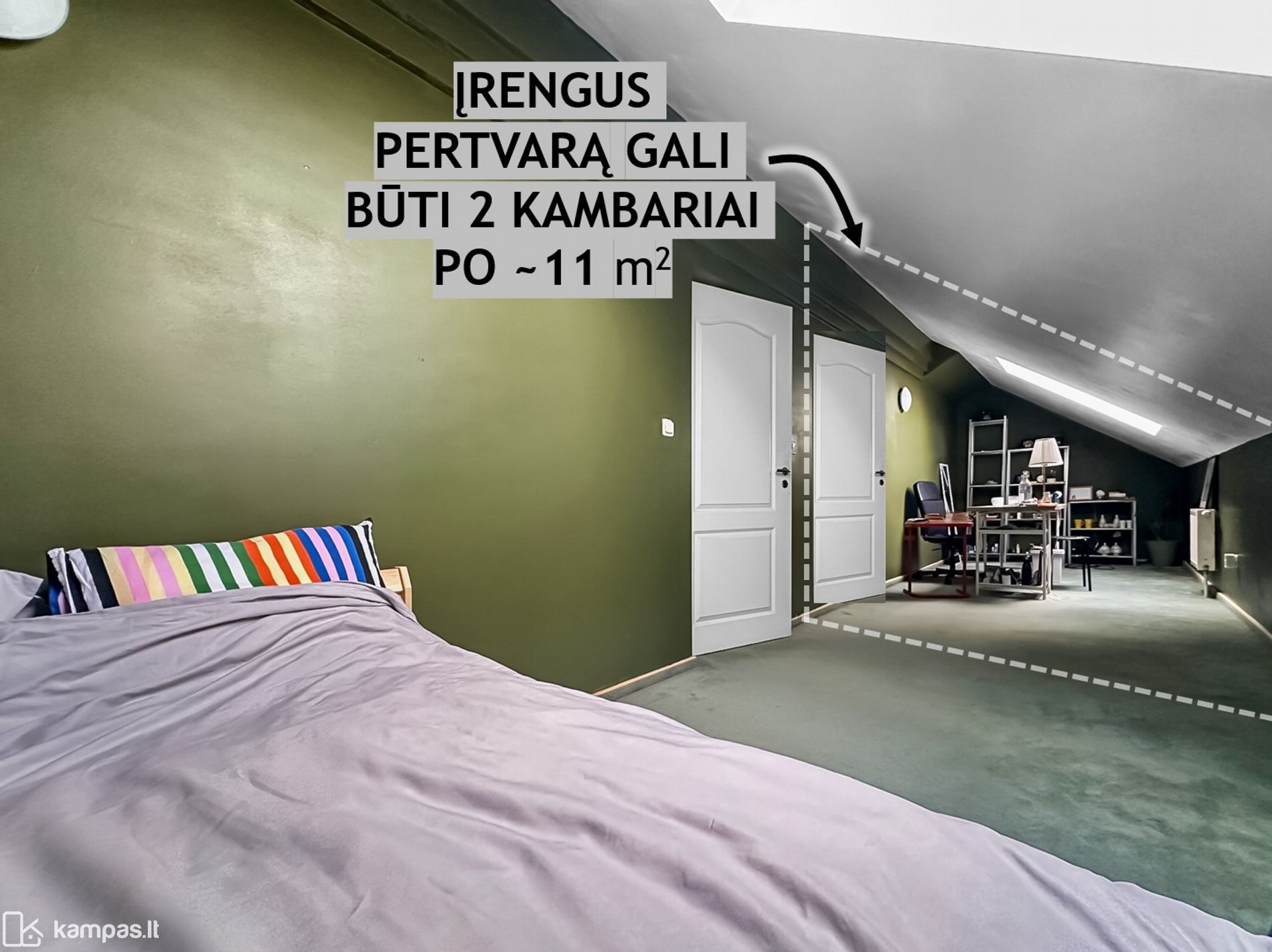 • Sienos: kambariuose ir ir virtuvėje – dažymas.