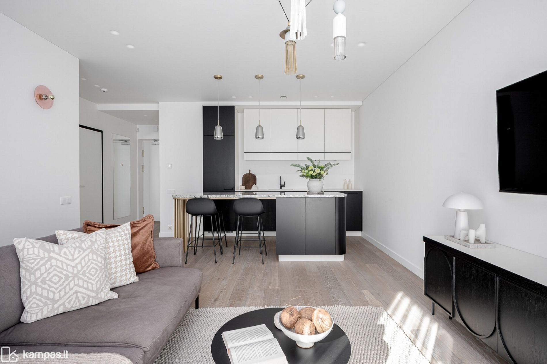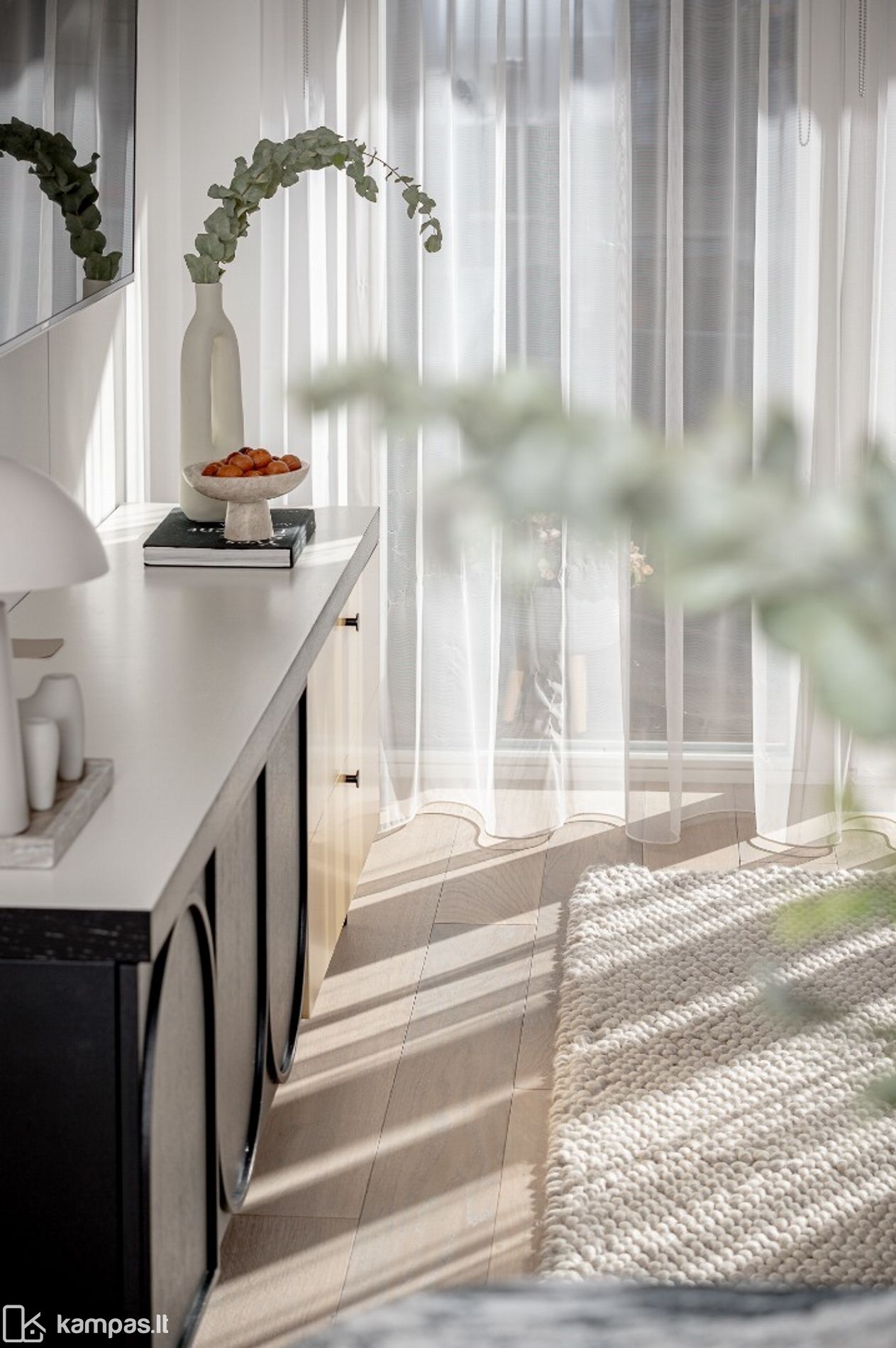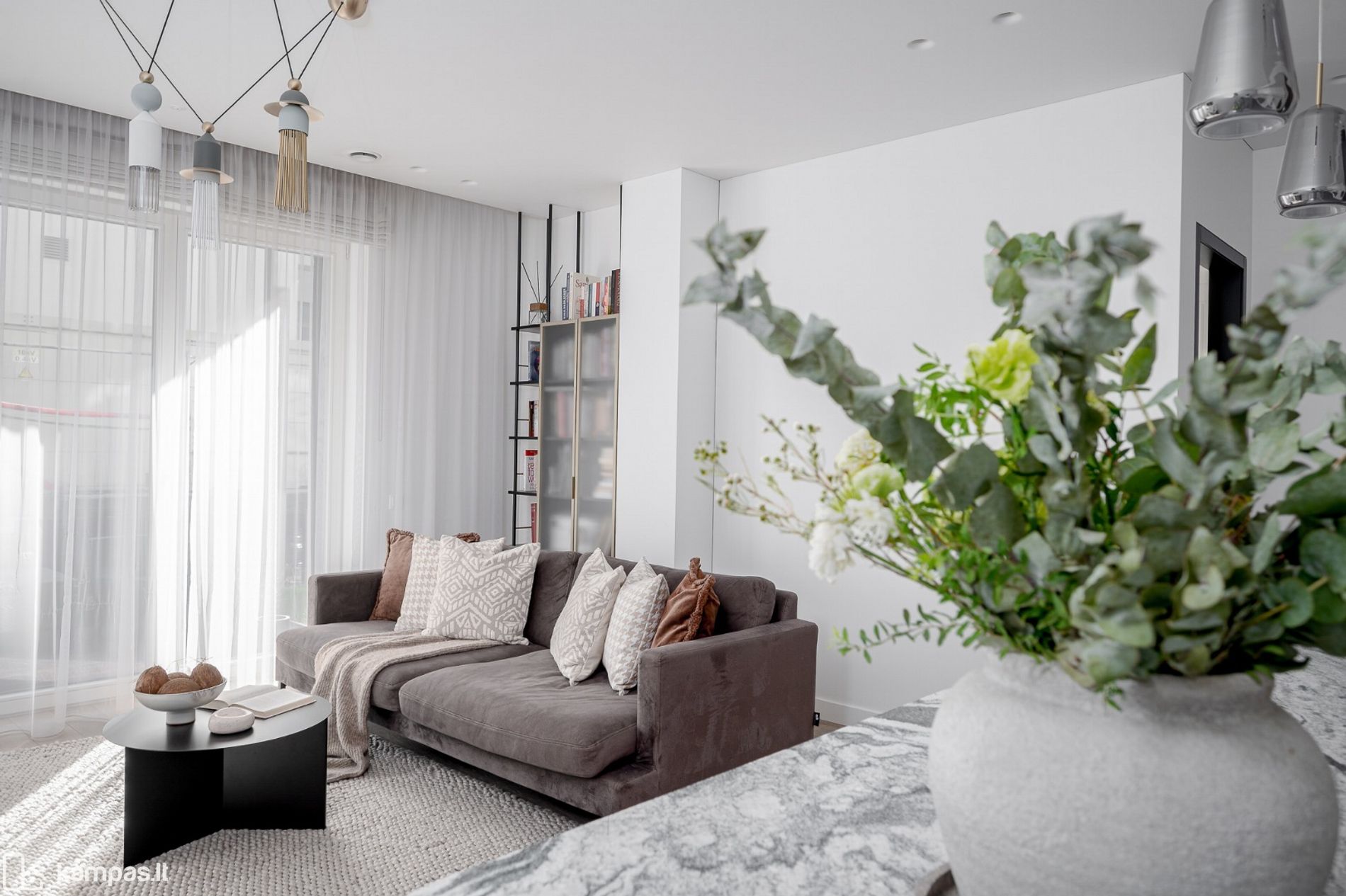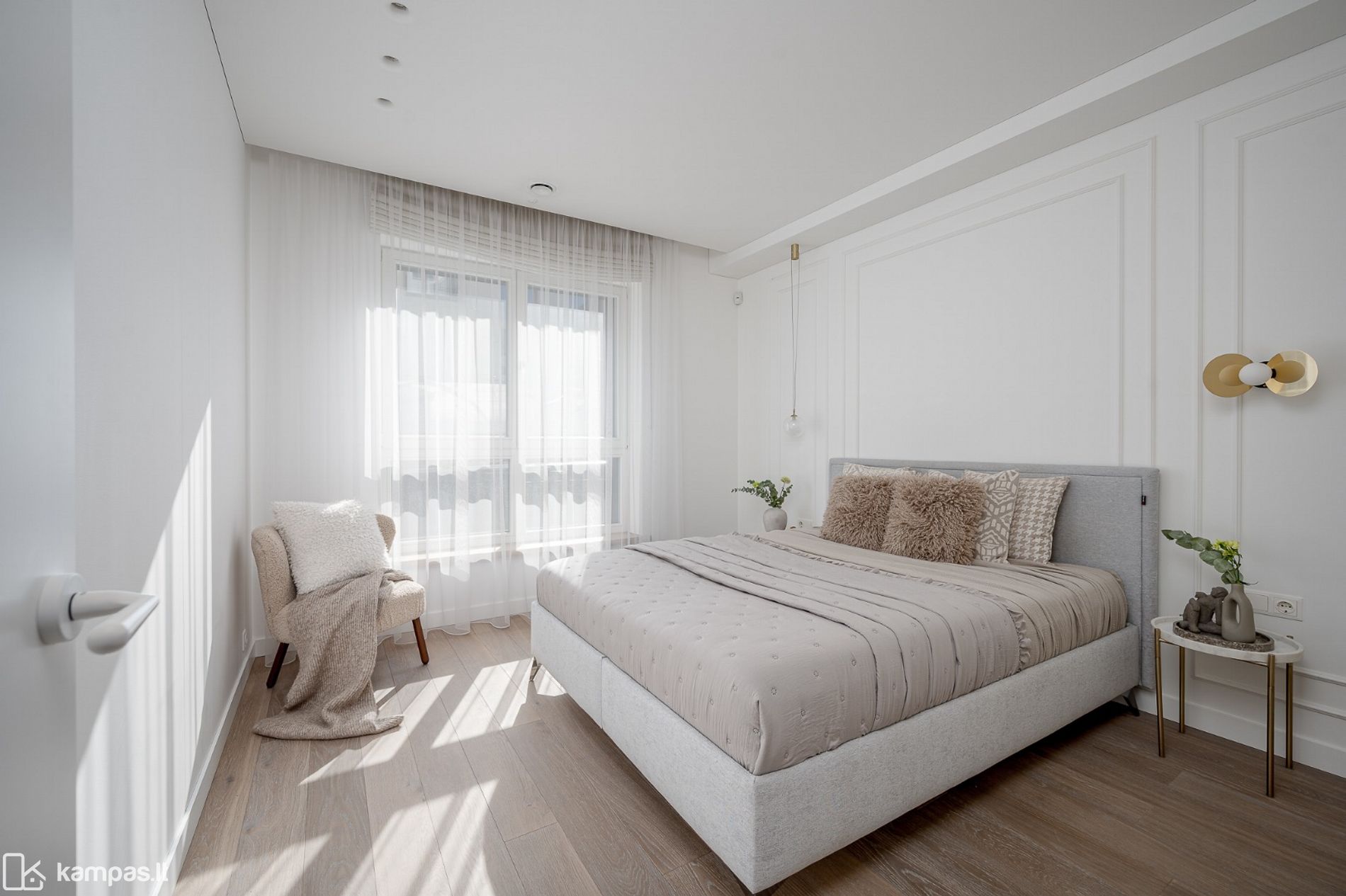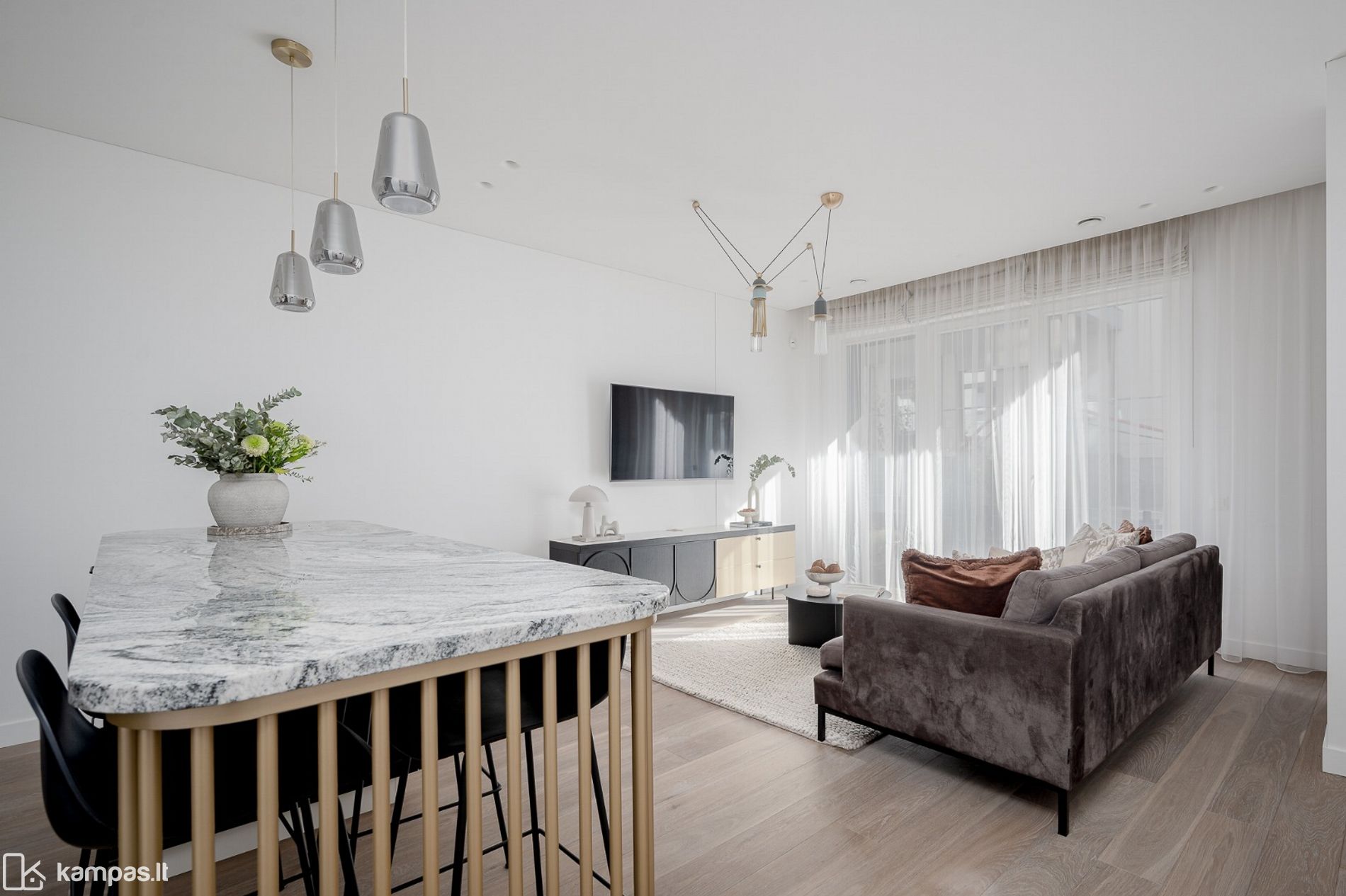 • Į pietus orientuoti dideli langai pripildo erdves natūralios šviesos – bute vyrauja šviesi ir jauki atmosfera;