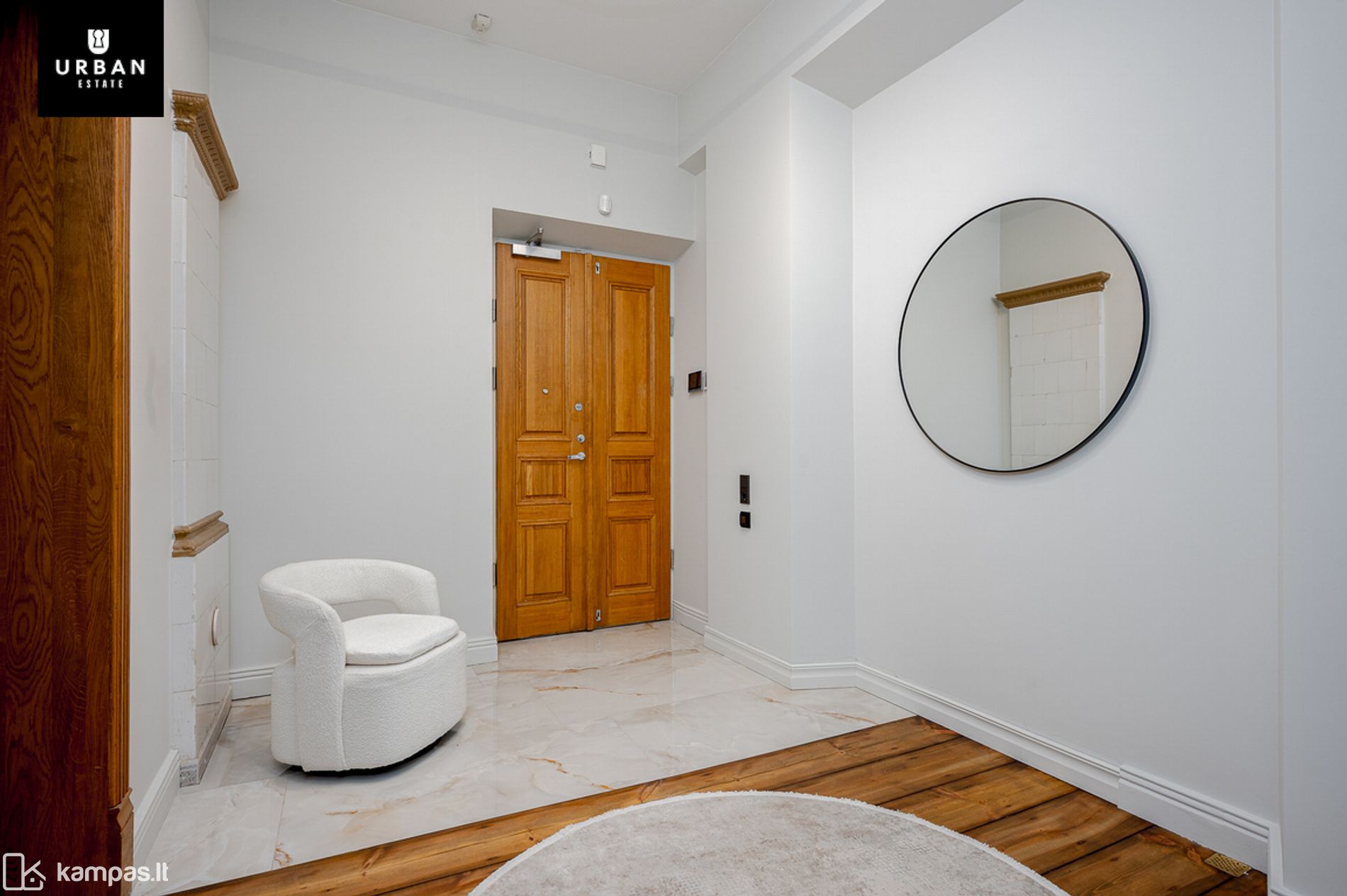 - Autentiškos bei atrestauruotos interjero detalės suderintos su šiuolaikiniu interjeru, itin aukštos lubos, siekiančios 3.2 metrus, dvivėrės durys, židinys, suteikia dar didesnio šarmo namams.