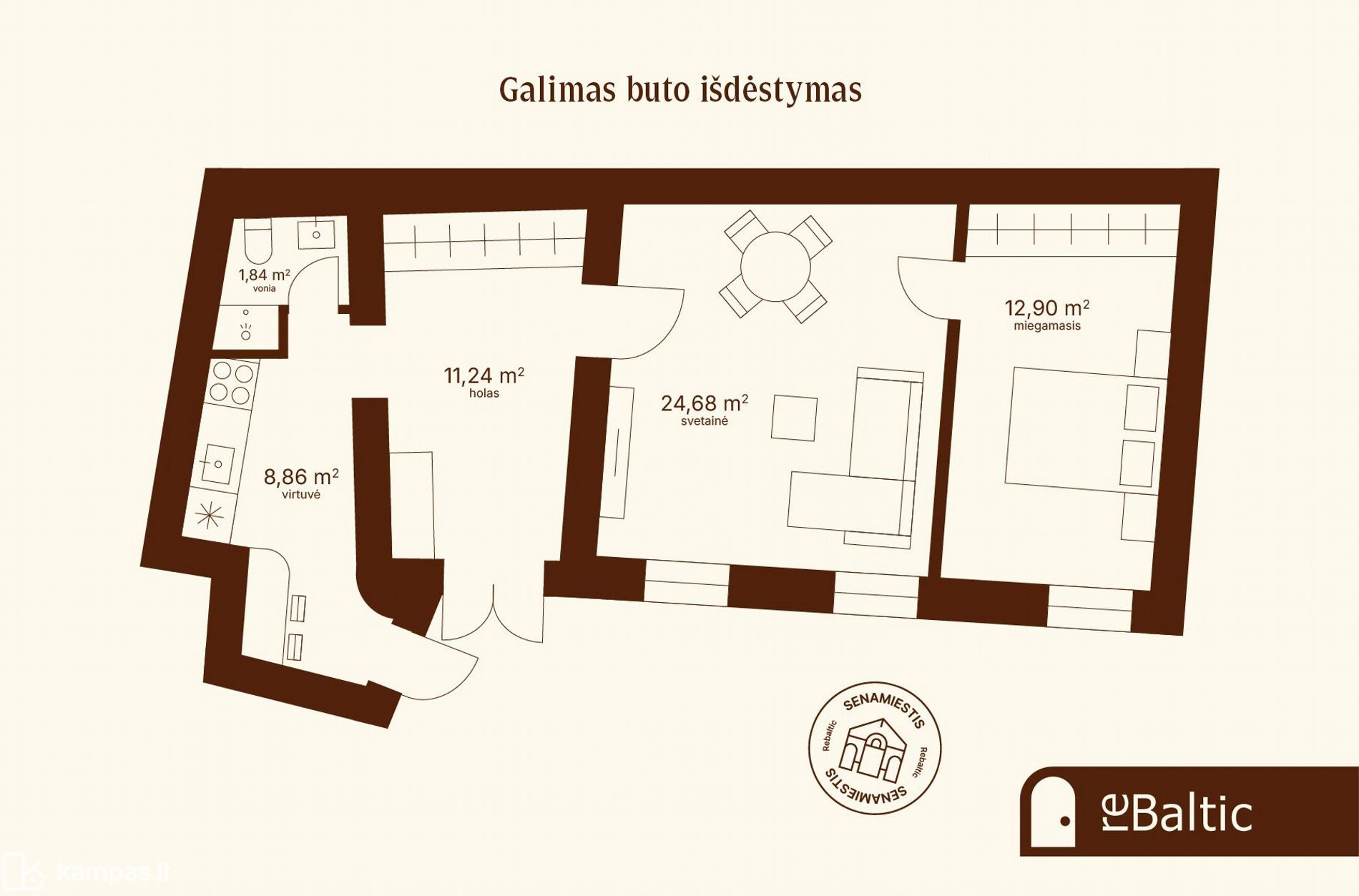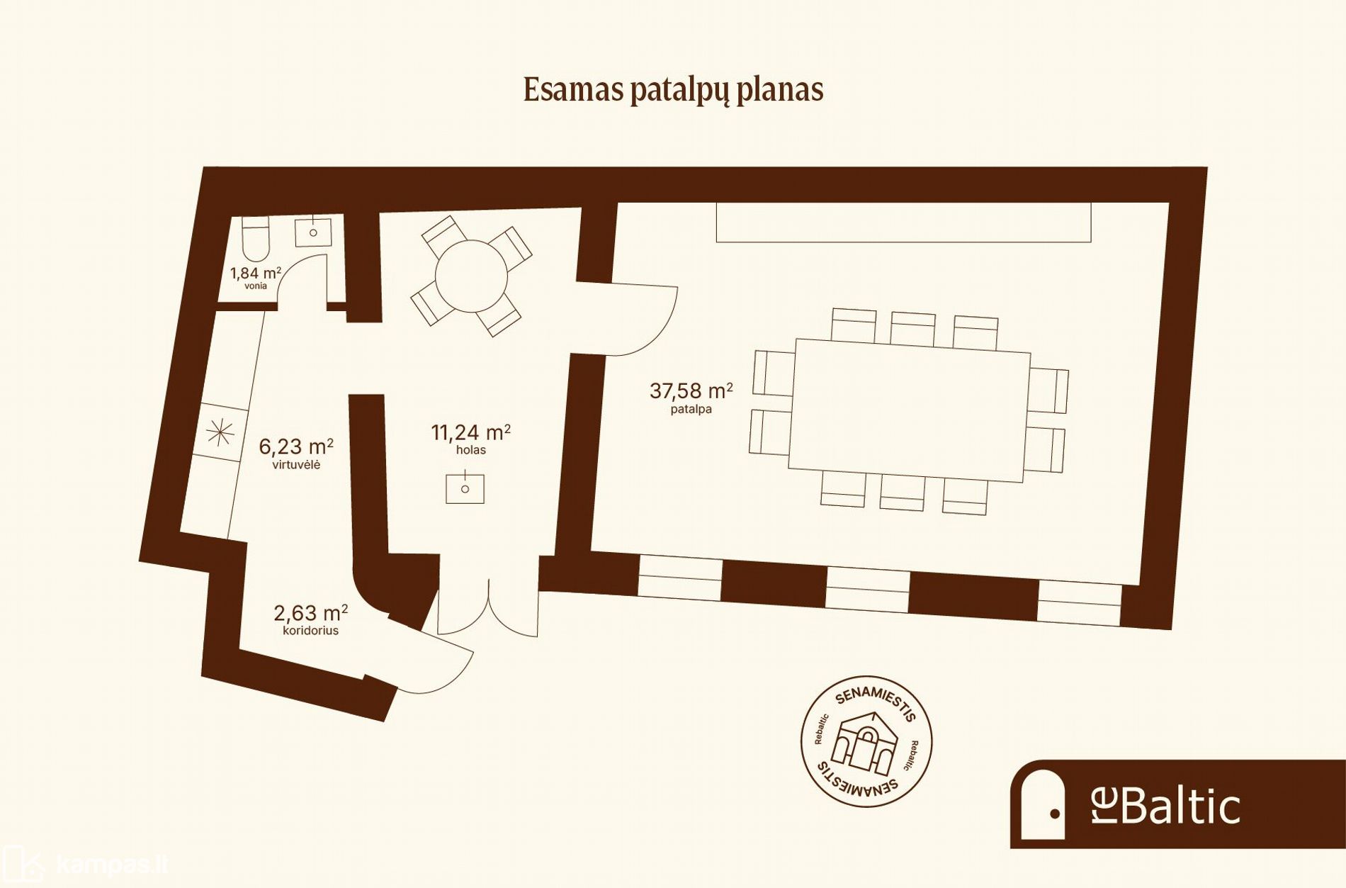 - Patalpų paskirtis - administracinė, jei yra poreikis- galimybė pakeisti paskirtį į gyvenamąją