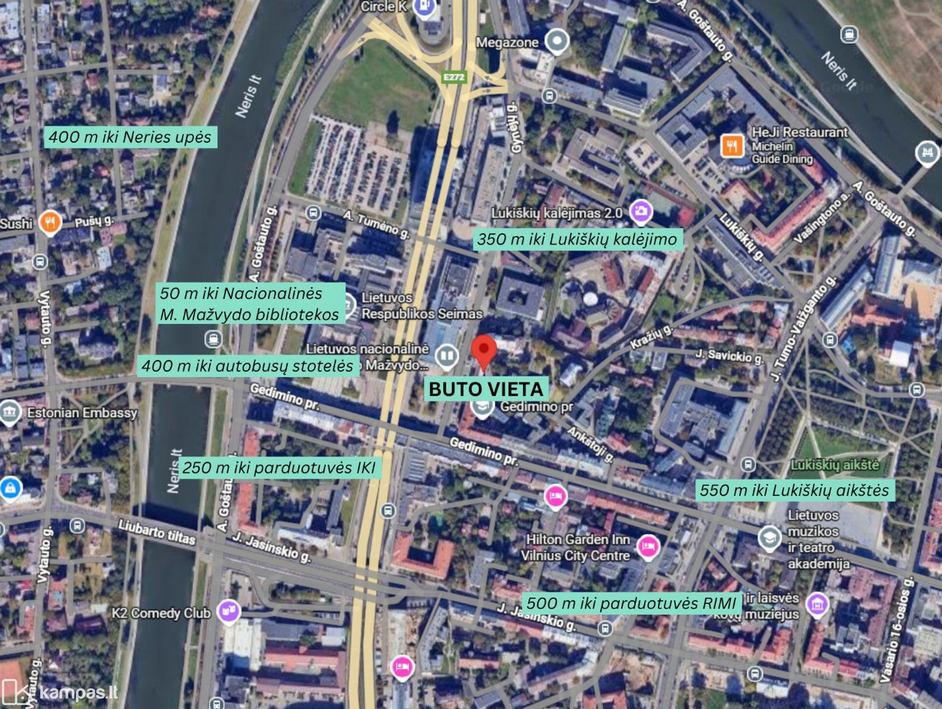 PARDUODAMAS 2 K. BUTAS VILNIAUS SENAMIESTYJE ŠALIA GEDIMINO PROSPEKTO