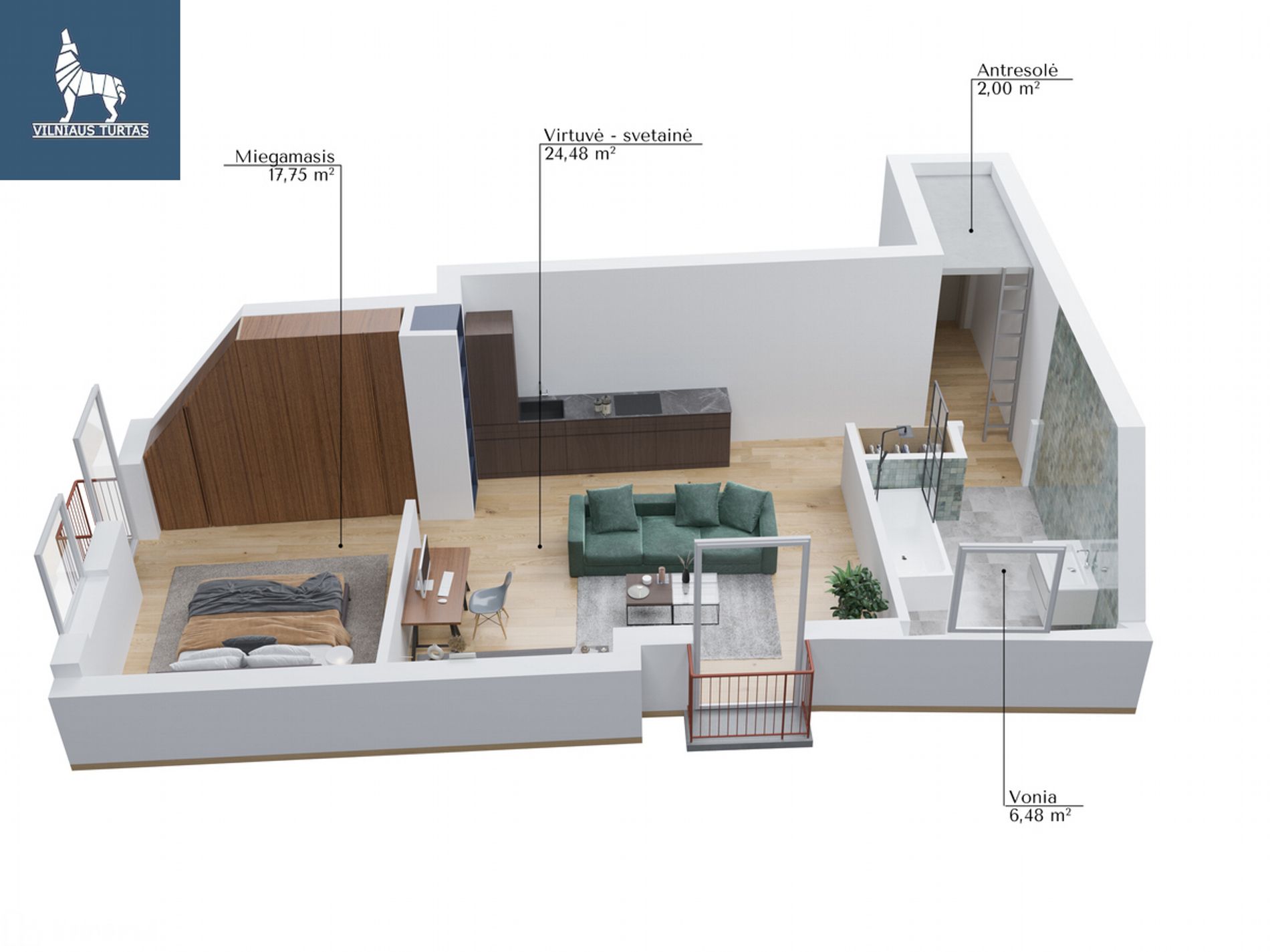 ✓ Antresolėje įrengtas 2 kv.m sandėliukas