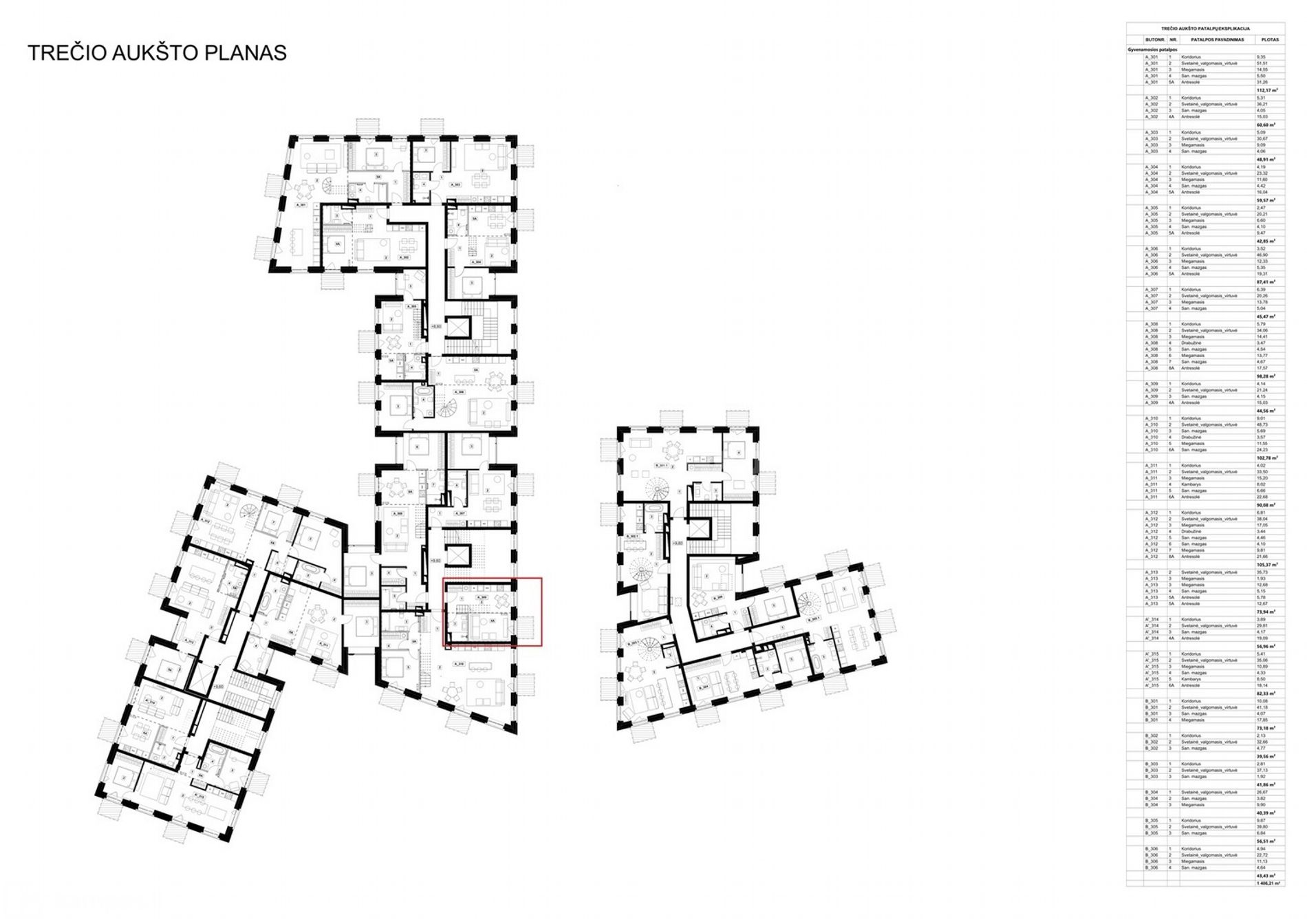 Projekte iš viso yra numatyti 62 butai. Būsimieji gyventojai jau dabar turi galimybę rinktis 2-jų, 3-jų ir 4-ių kambarių butus nuo 40 kv.m. iki 122 kv.m. Daugelyje butų yra numatoma įrengti antresoles.
