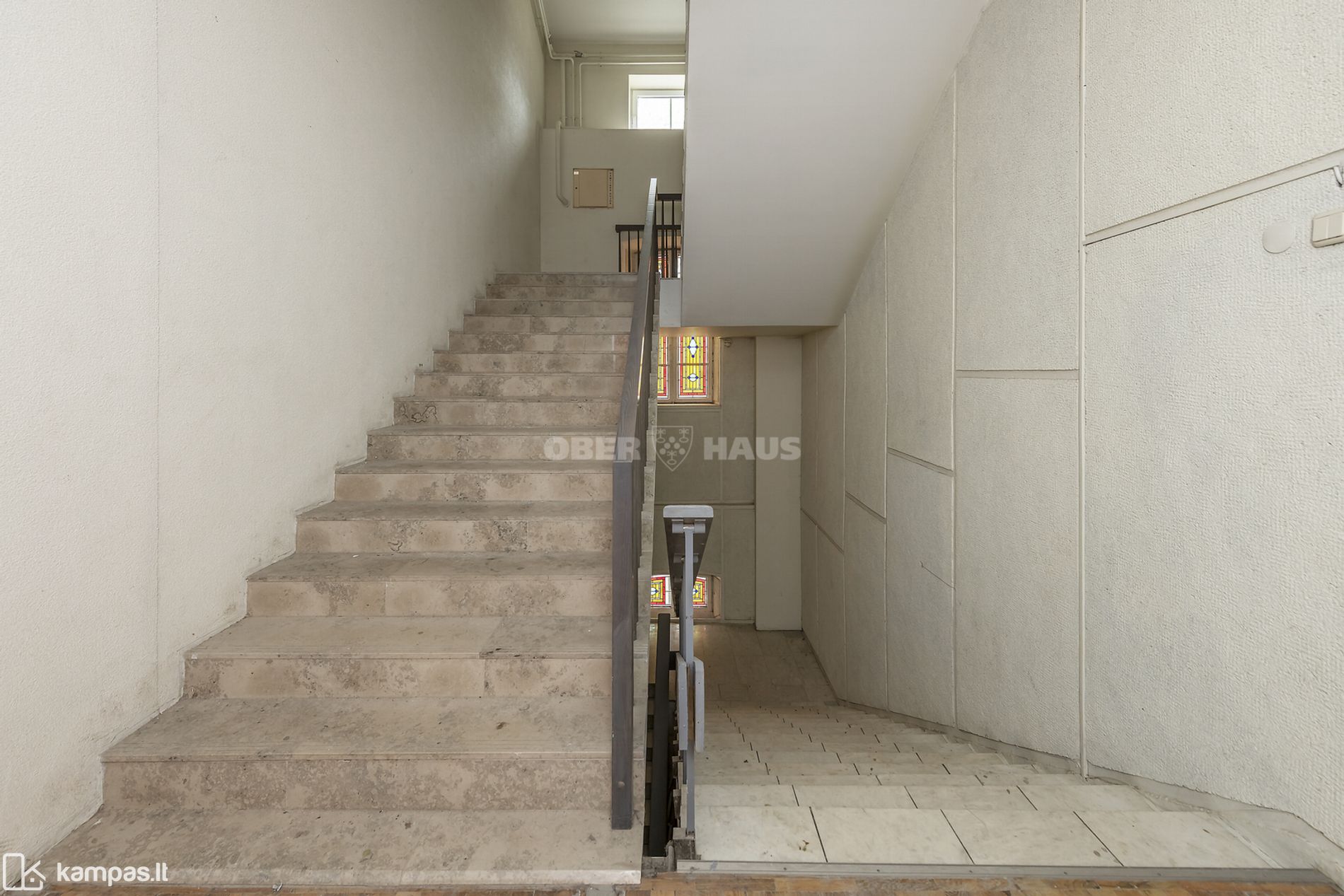 - Marmurų dekoruota laiptinė su senoviniais šviestuvais.