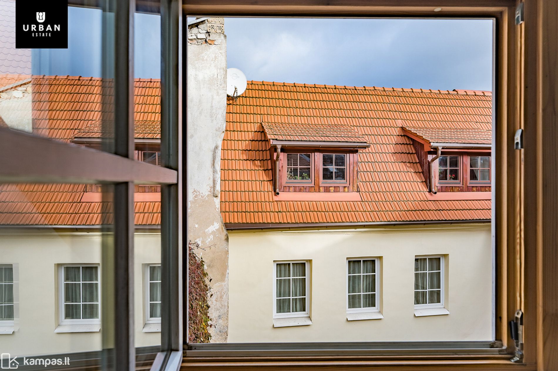 - Butas su vidiniu kiemeliu bei senovine arka, kuriame turėsite savo parkavimo vieta, langai orientuoti į vidinį kiemą, kuriame galėsite atsikvėpti po kasdienių darbų. Vaizdas pro svetainės langus į jaukią senamiesčio architektūrą;