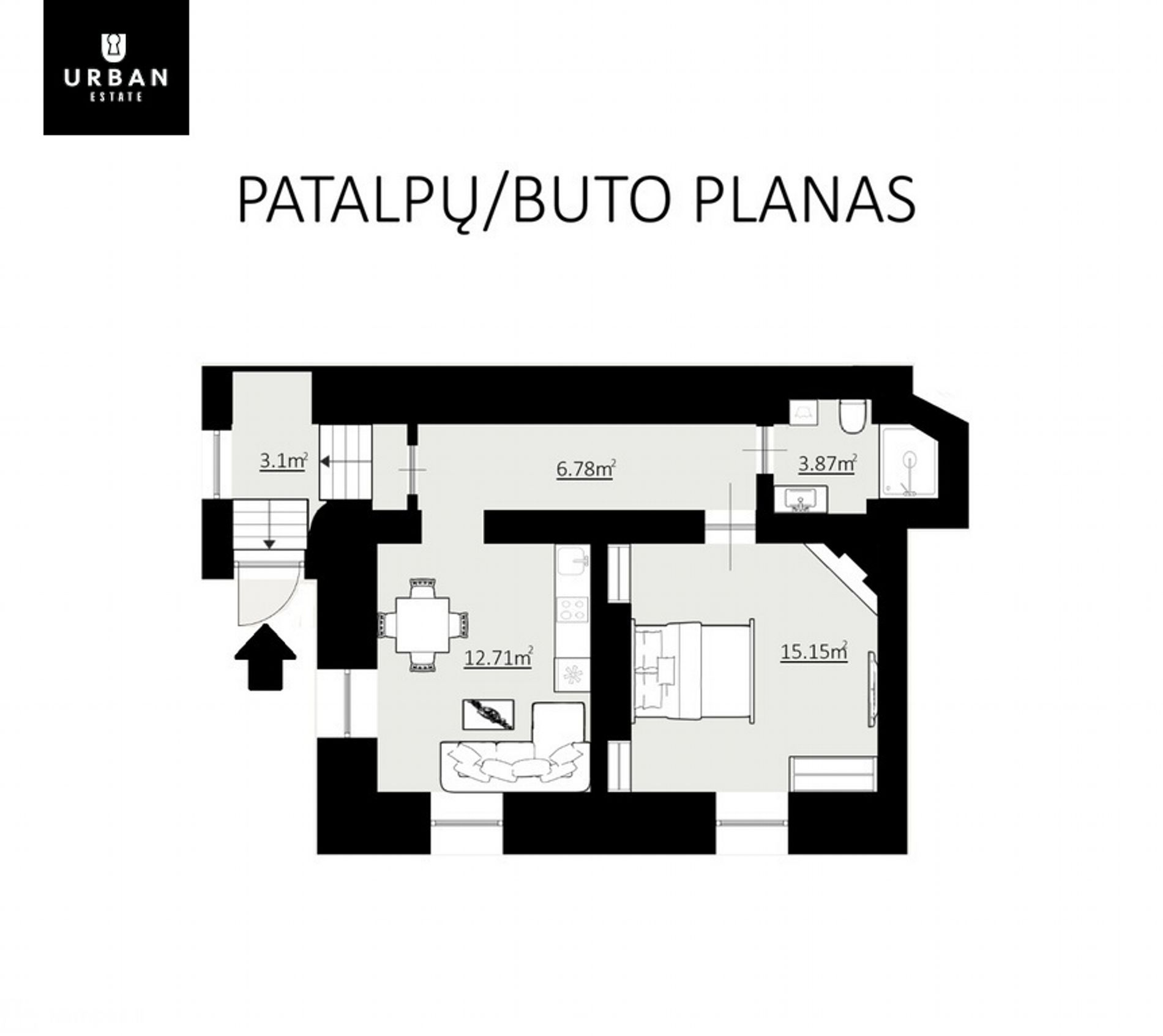 • Butas/patalpos su atskiru patogiu įėjimu, funkcionaliai išplanuotomis erdvėmis.