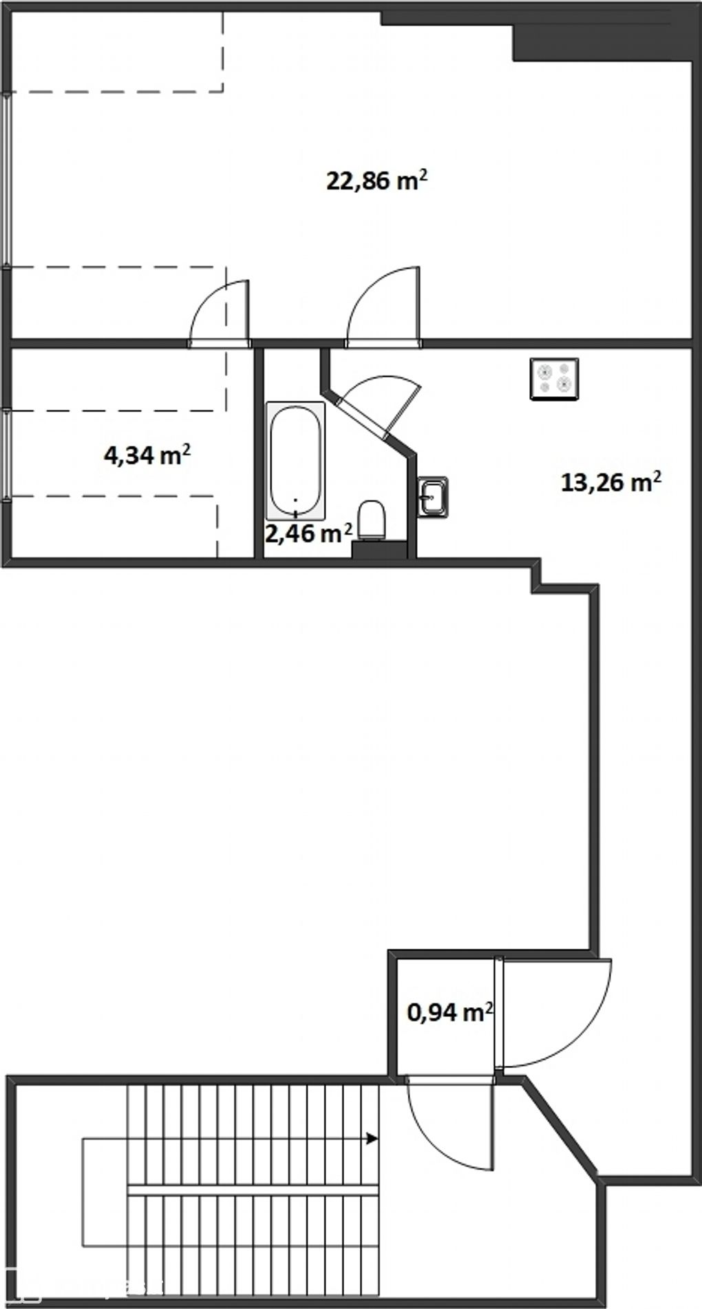 Parduodamas butas, kurio oficialus plotas – 43,92 kv. m, tačiau bendras naudojamas plotas siekia net 69 kv. m.