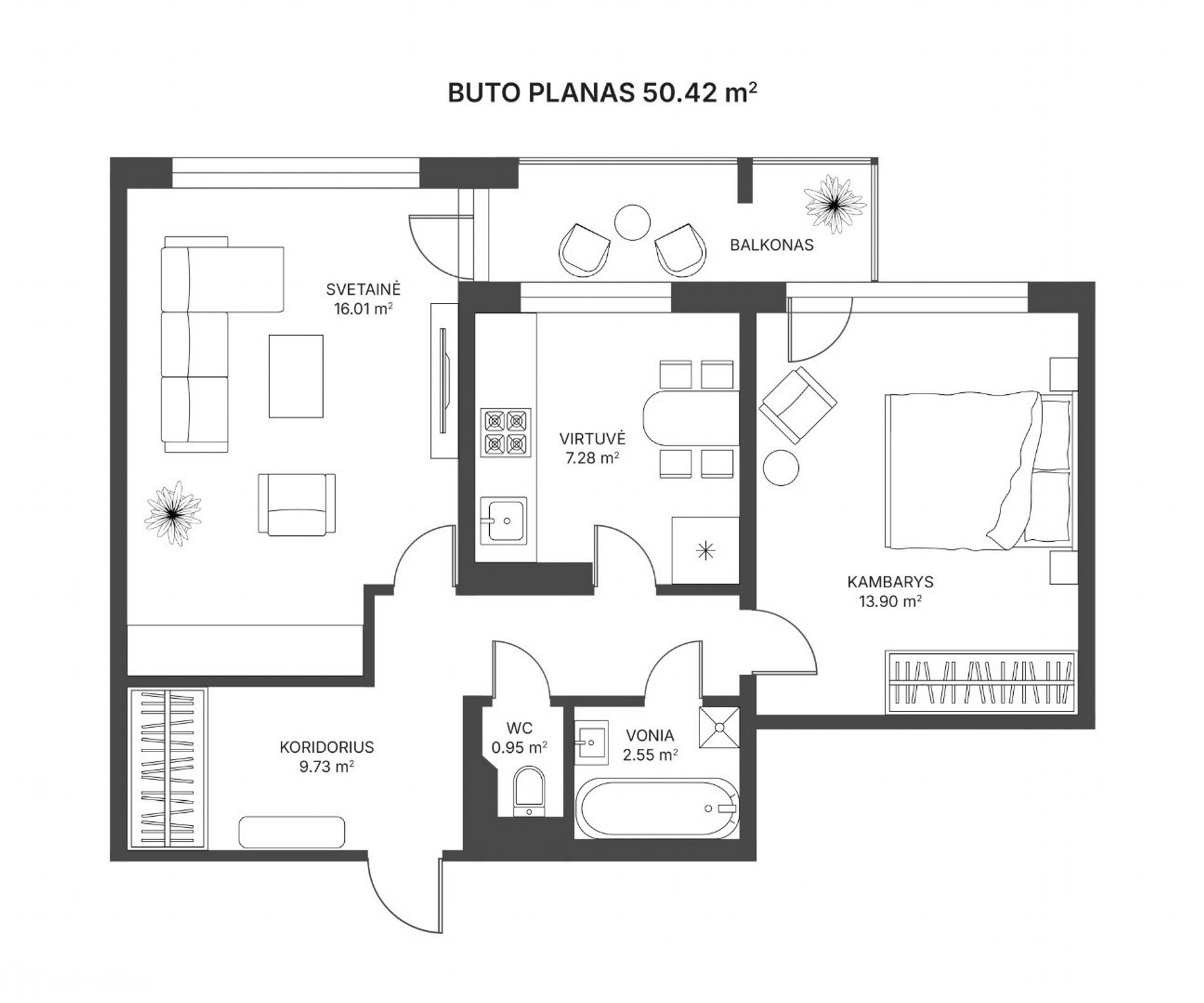 • Bendras plotas - 50.42 kv.m;