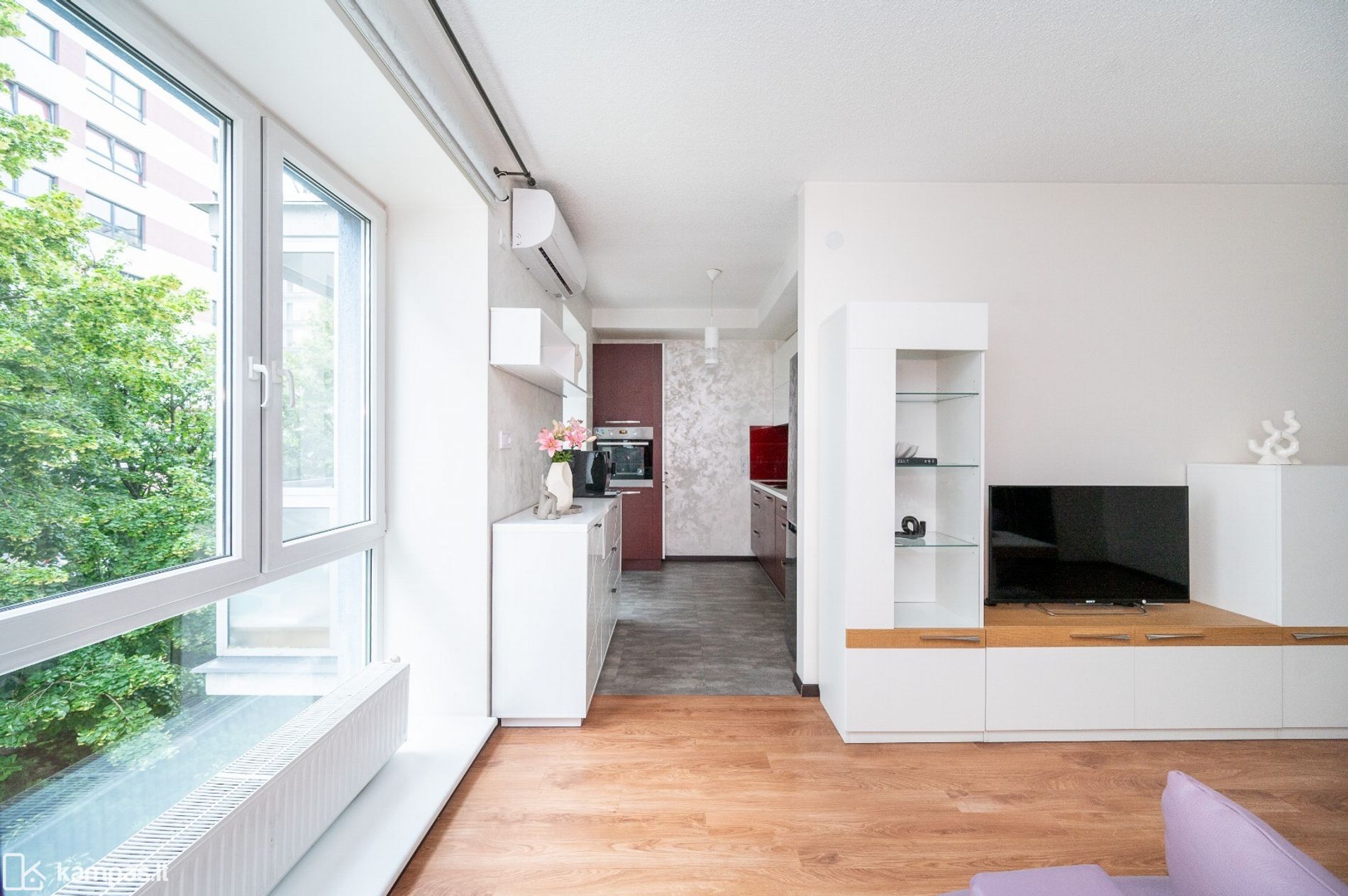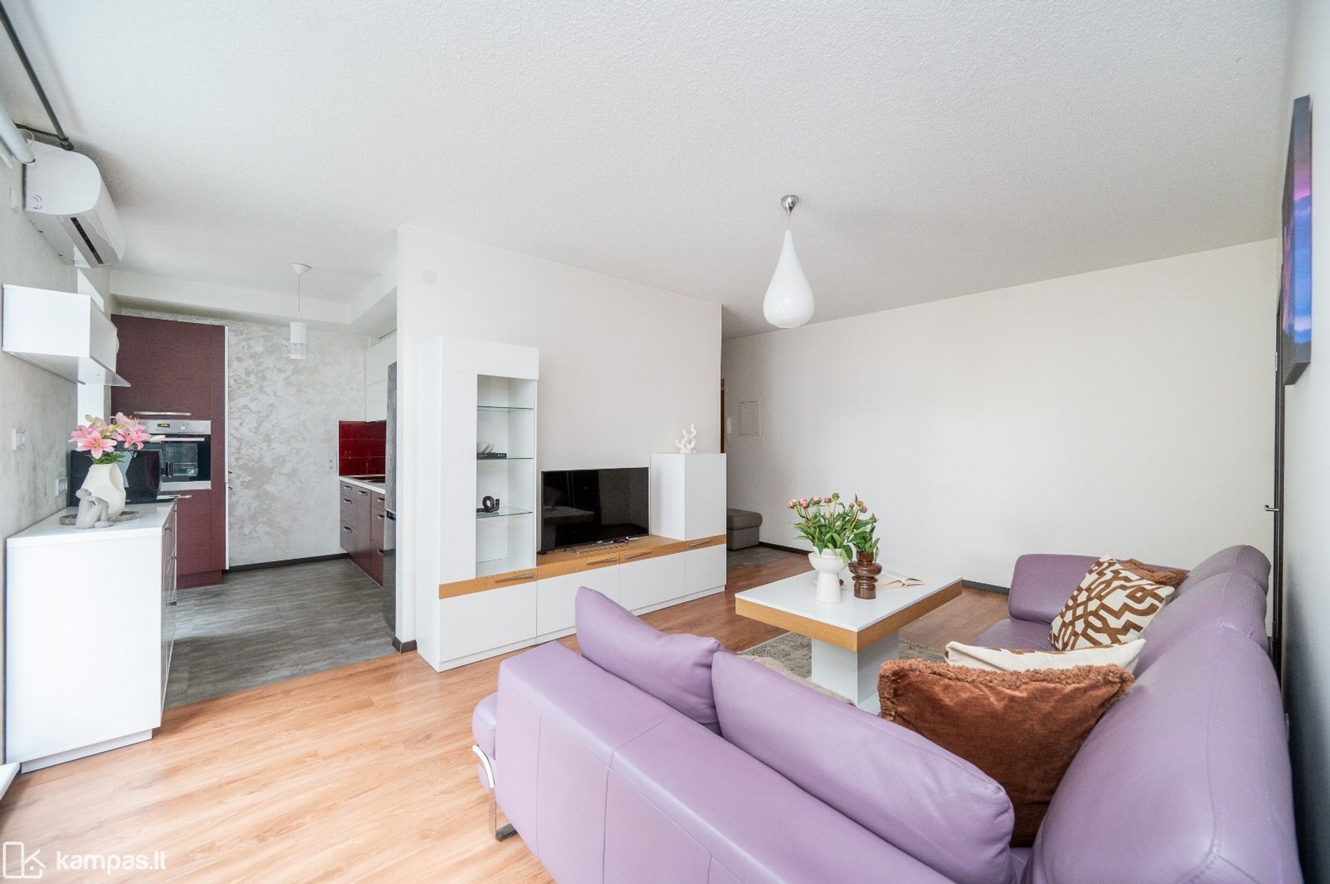 • Funkcionalus bei patogus išplanavimas: svetainė sujungta su virtuvės bei valgomojo zonomis, du atskiri miegamieji kambariai, erdvus vonios kambarys.