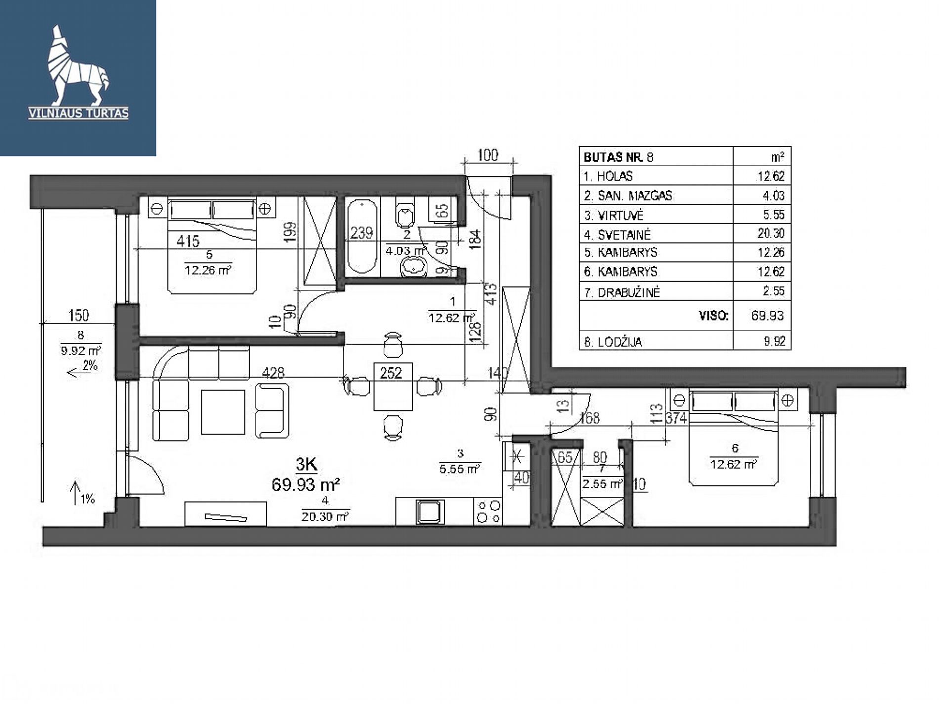 - Lodžija 9,92 m². (lodžija neįtraukta į bendrą buto plotą!)