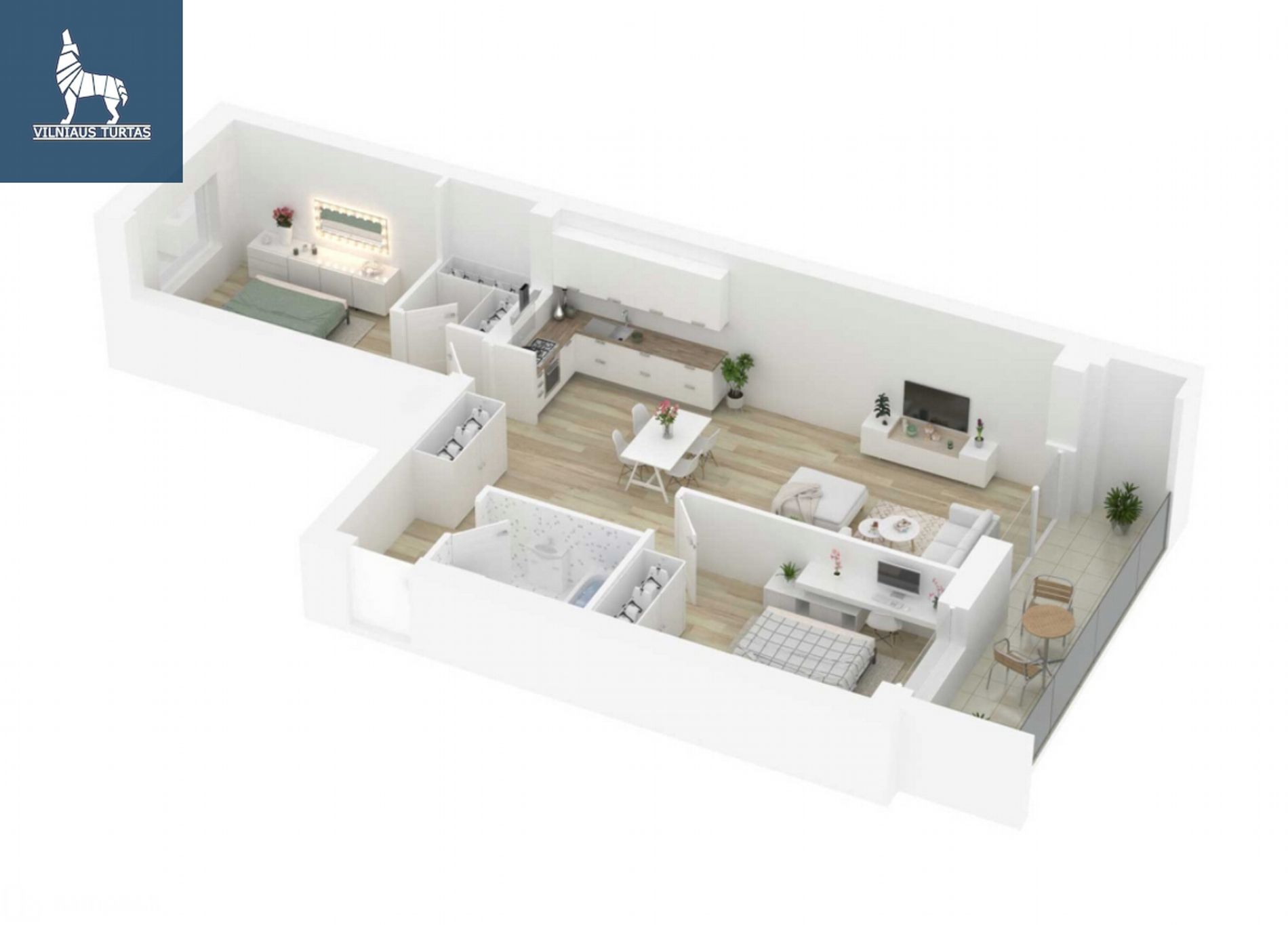 Parduodamas funkcionaliai išplanuotas 3 kambarių butas su jaukia lodžija, Šnipiškėse, Daugėliškio g. 33, Vilniuje.