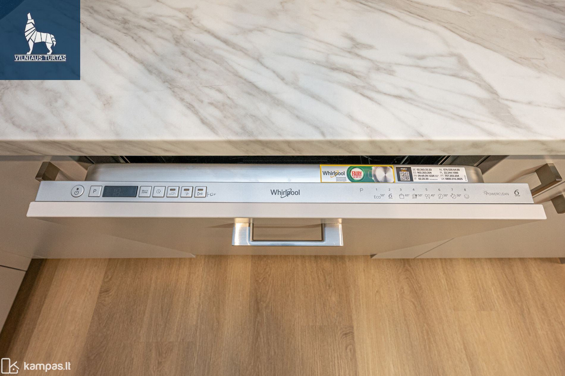 * Pilnai įrengta virtuvė (šaldytuvas, orkaitė, indaplovė, skalbimo mašina, gartraukis);