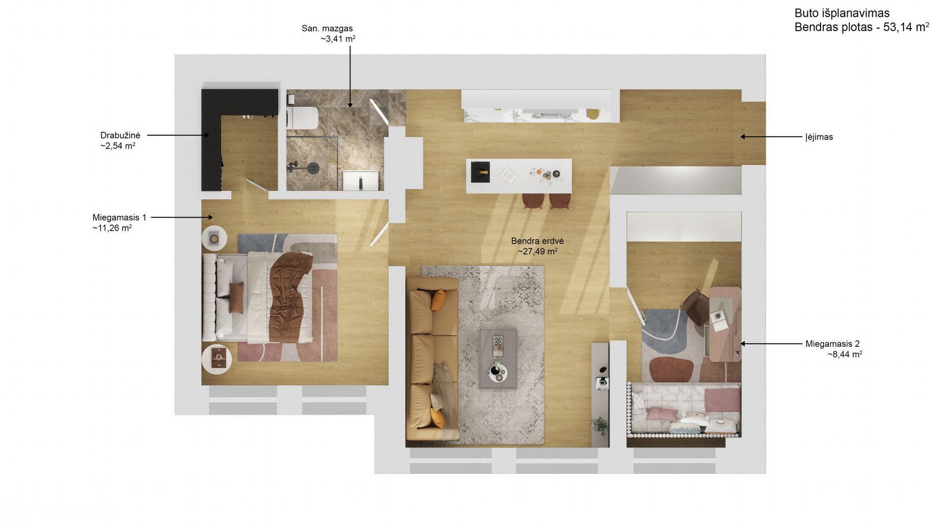 ➢ Buto plotas: 53.14 kv.m.