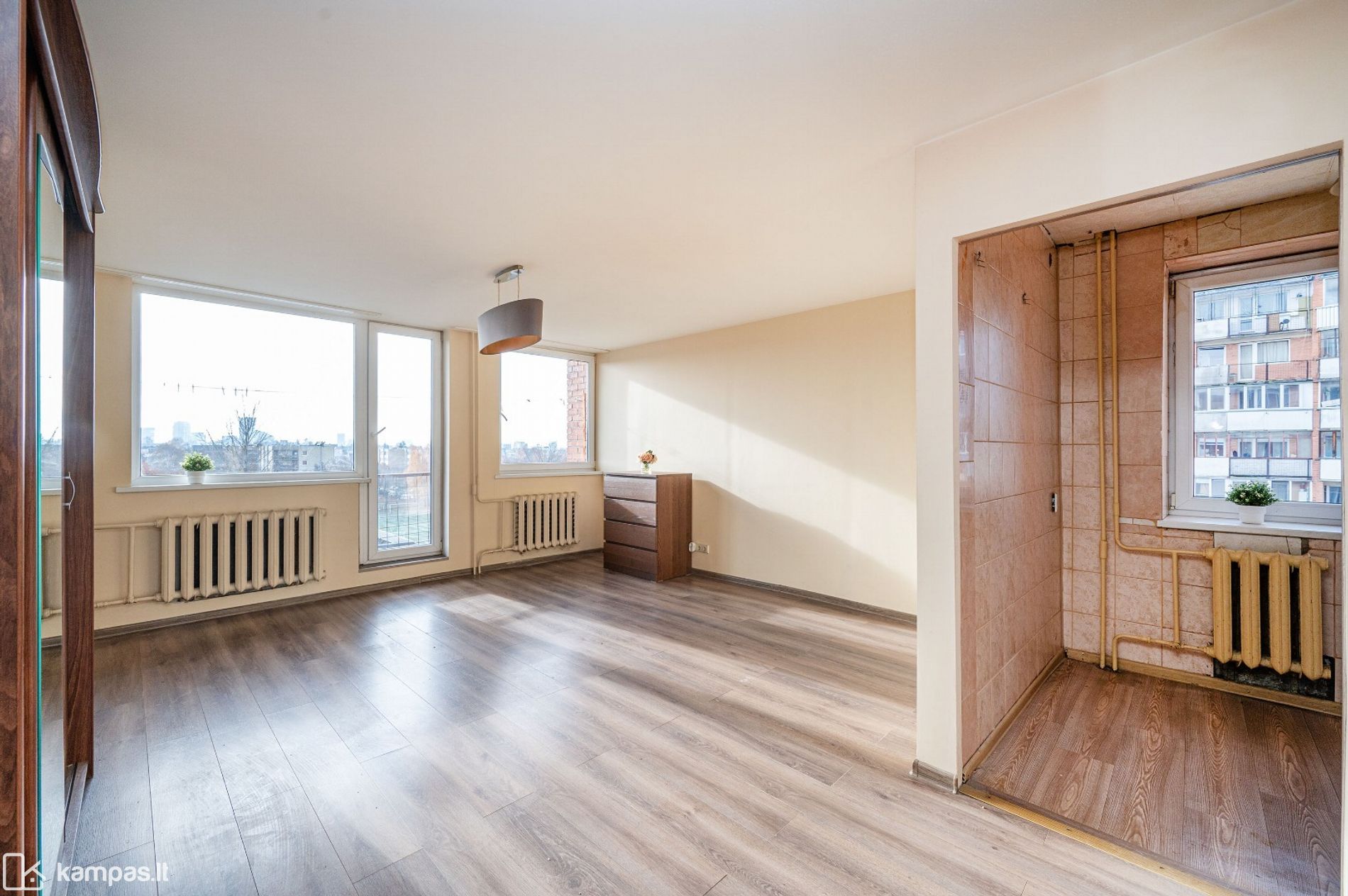 - Įrengimo lygis: kambarys pilnai atnaujintas, virtuvei ir san.mazgui reikia remonto (gera galimybė įsirengti pagal savo poreikius ir norus).