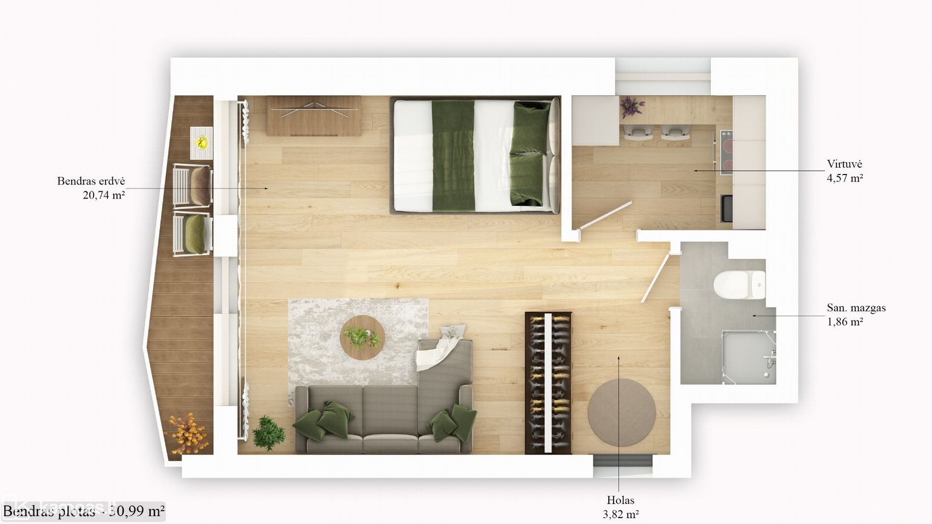 - Bendras plotas: 30,93 kv.m;