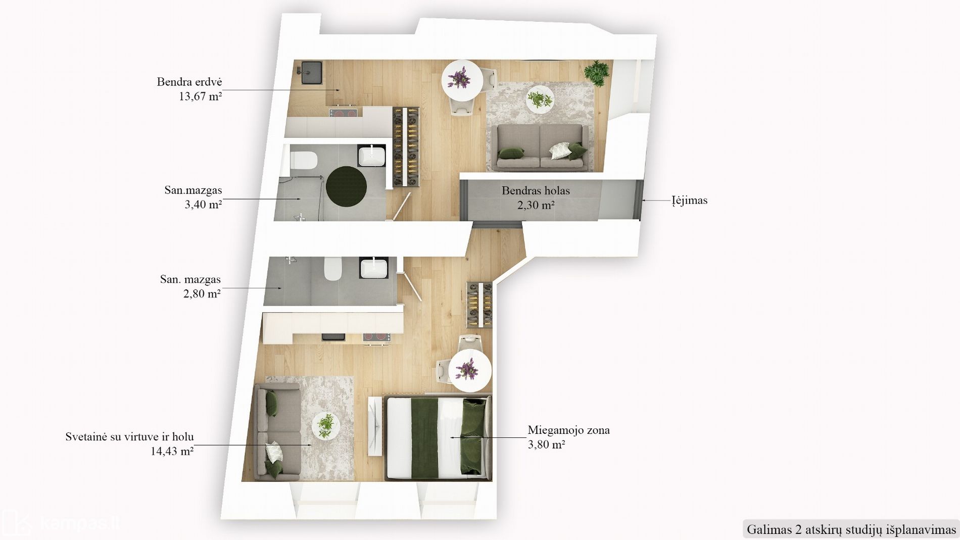 ➢ 2 atskiros studijos (su patalpų naudojimosi tvarka)