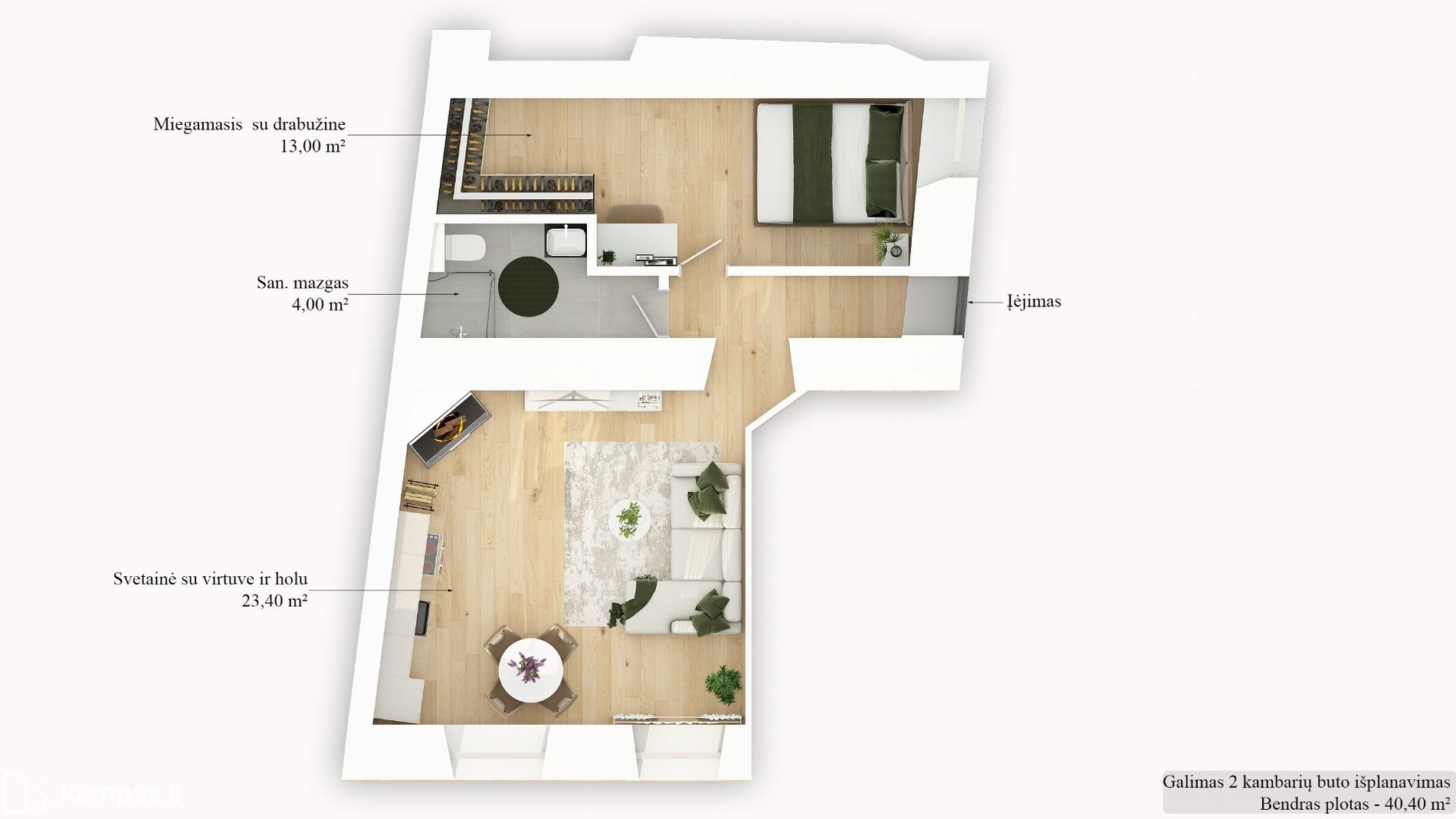 ➢ Buto plotas: 40.04 kv.m.