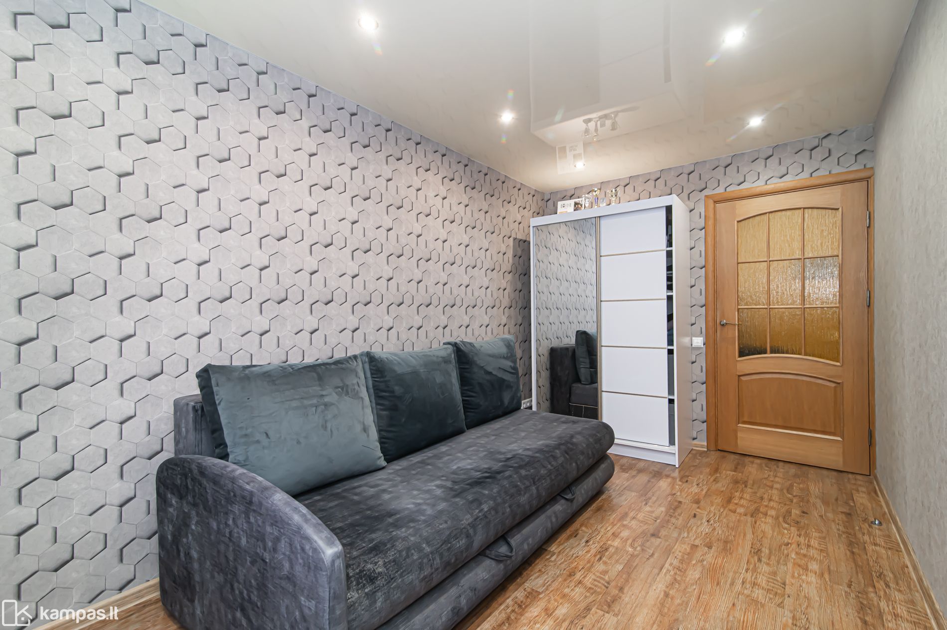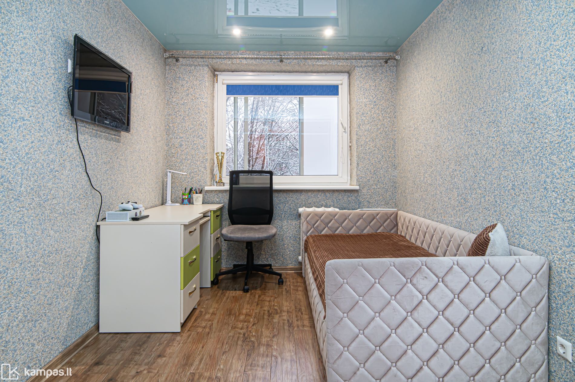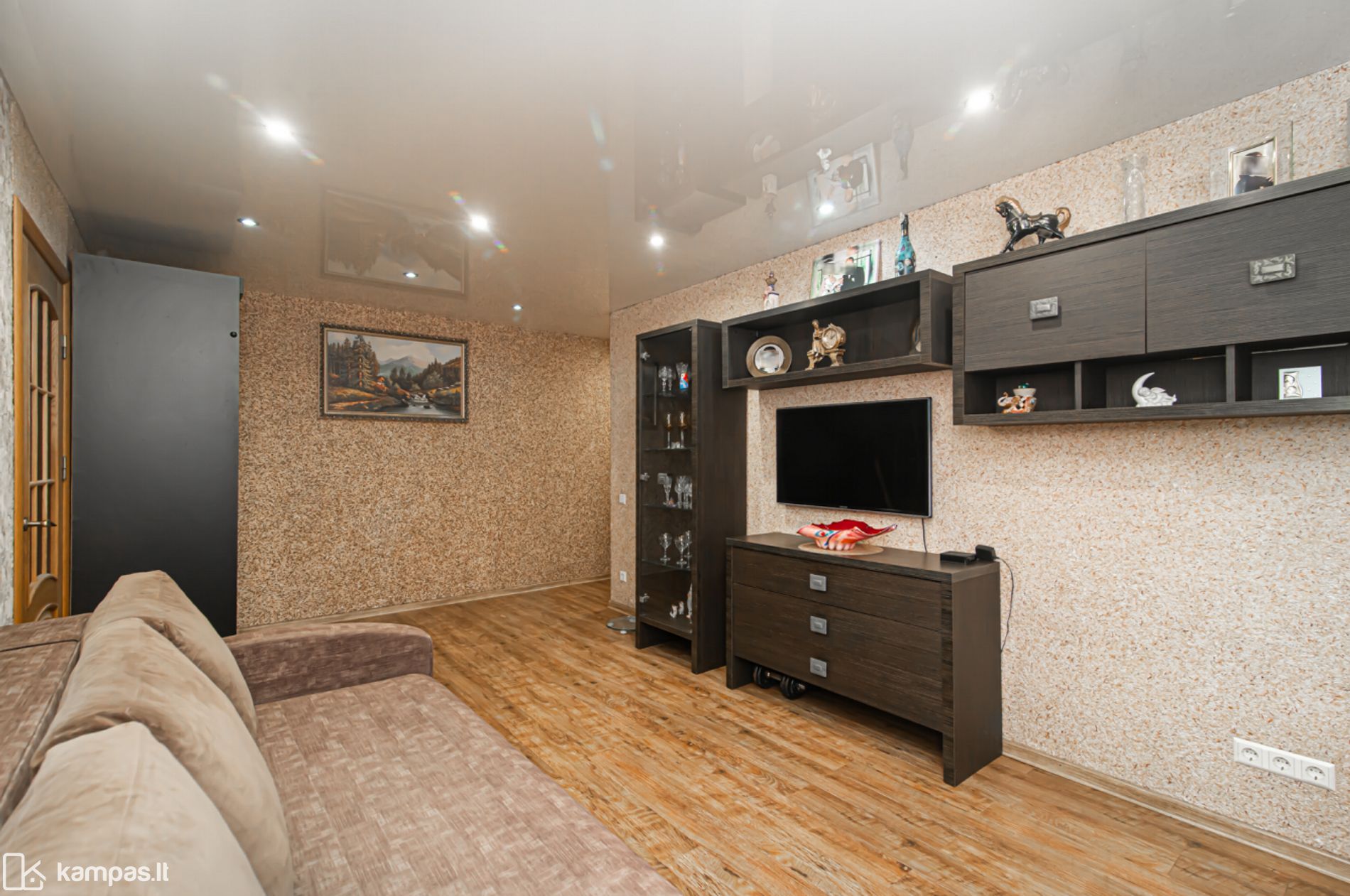 - Visos buto sienos išlygintos, įrengtos įtempiamos lubos;