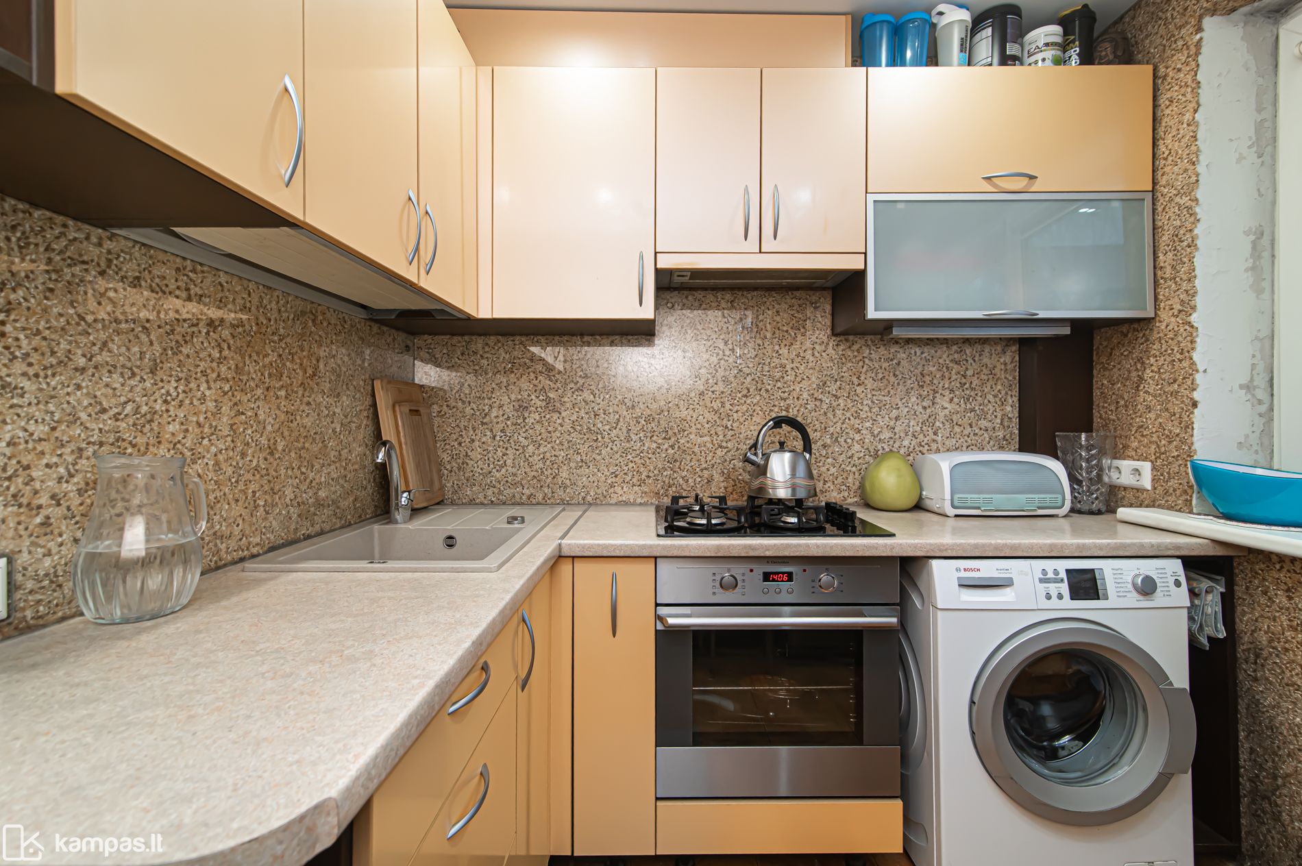 - Grindys – kokybiškas laminatas, virtuvėje ir san. mazge plytelės.
