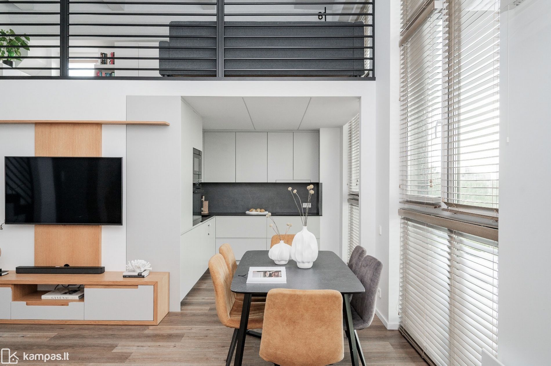 Modernus net 85,65 kv. m. ploto lofto tipo butas, įsikūręs naujame projekte „Western 32“. Butas išsiskiria įspūdingo aukščio lubomis, vitrininiais langais per du aukštus, kurie užtikrina gausią natūralią šviesą ir erdvės pojūtį. Šiuolaikiškas interjeras, funkcionalus išplanavimas, unikalios dizaino detalės ir visi kasdieniam gyvenimui reikalingi baldai bei kiti patogumai sukuria komfortišką ir stilingą aplinką. Projektas žavi industriniu architektūriniu stiliumi, aukšta statybų kokybe ir patogia vieta – tai puikus pasirinkimas vertinantiems kokybę, estetiką ir modernų gyvenimo būdą.