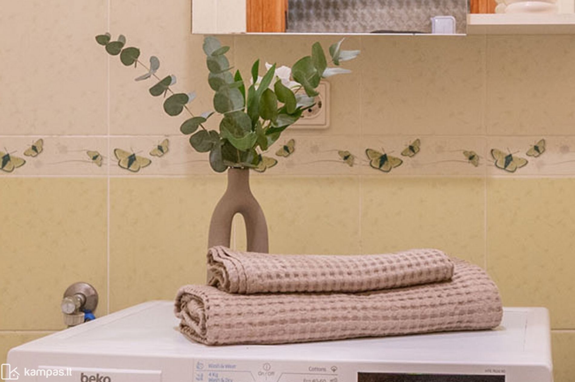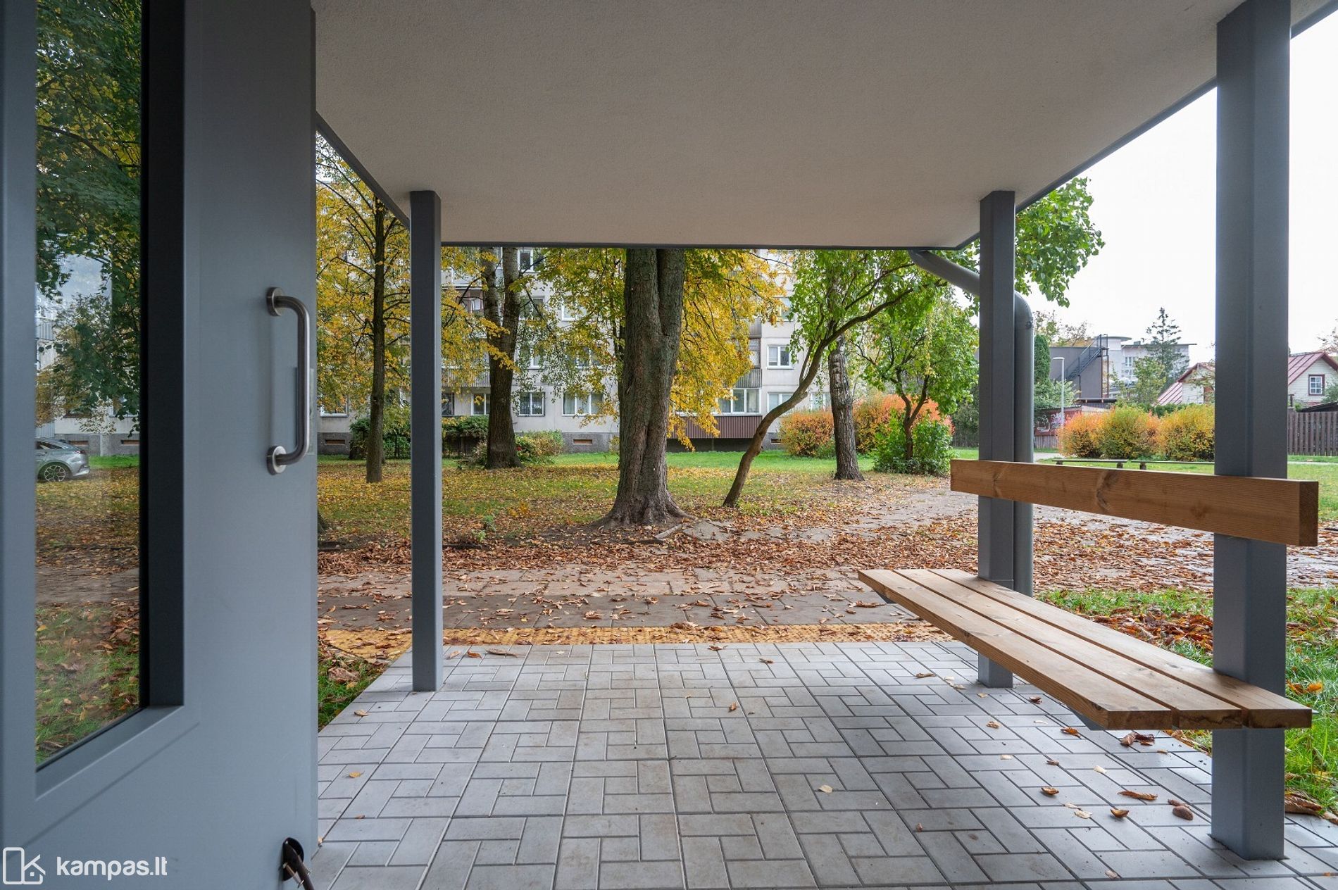 Lokacija yra toliau nuo intensyvaus eismo gatvių, todėl aplinka rami. Didelis, net 7,33 kv. m įstiklintas balkonas tampa puikia vieta poilsiui ar rytinei kavai, o vakarinė saulė užlieja kambarius šilta šviesa. Aplink namą gausu žalumos ir medžių, tad vaizdas pro langus suteikia privatumo ir ramybės pojūtį. Gvenimas viršutiniame aukšte garantuoja tylą, privatumą ir tai, kad niekas nevaikščios virš galvos. Namo renovacijos ir lokacijos kombinacija užtikrina ir investicijų grąžą - butą galima iškart nuomoti su minimaliu atnaujinimu, o planuojant įsirengti gyvenimui - verta pagalvoti apie rimtesnį, individualų remontą, kuris šią erdvę pavers dar patogesne ir modernesne.