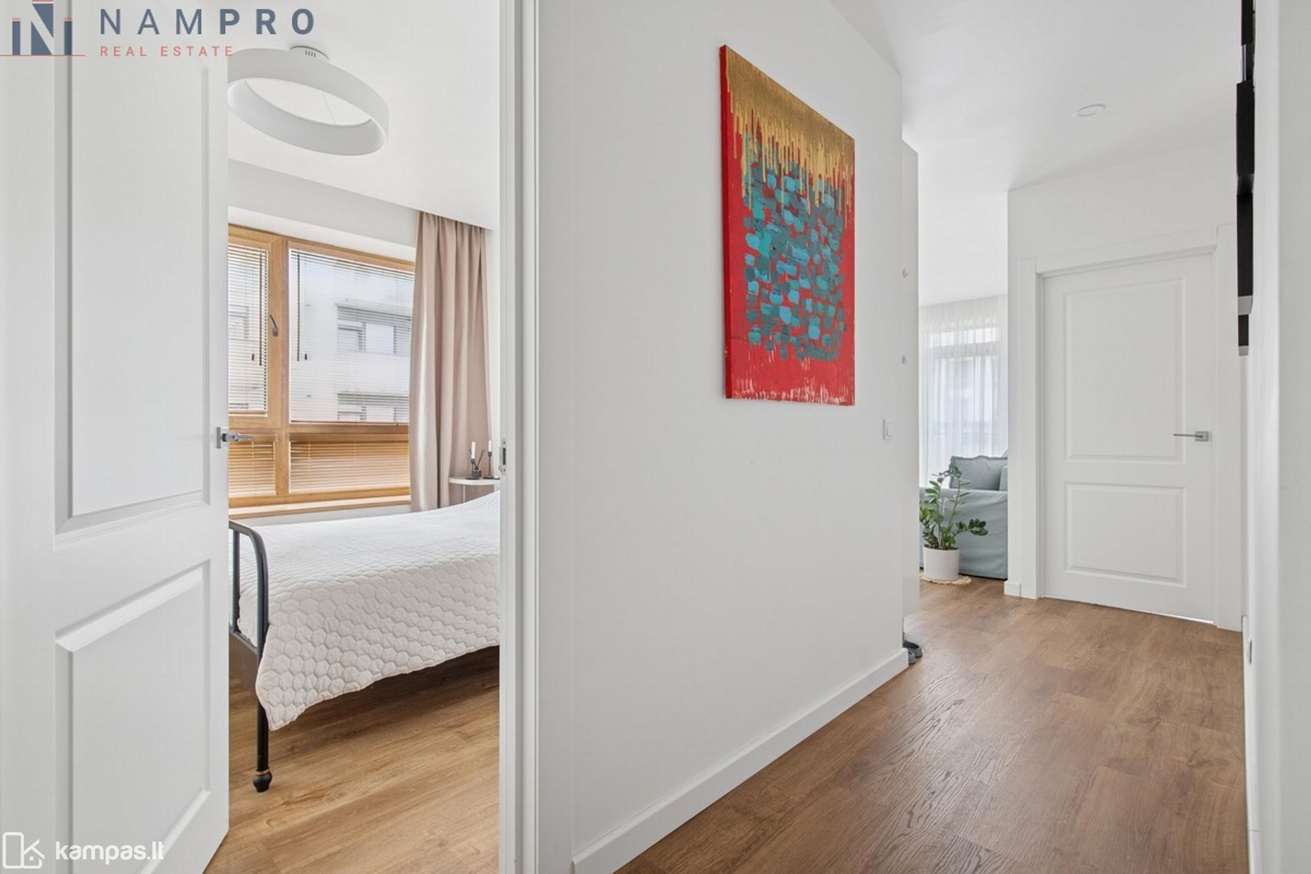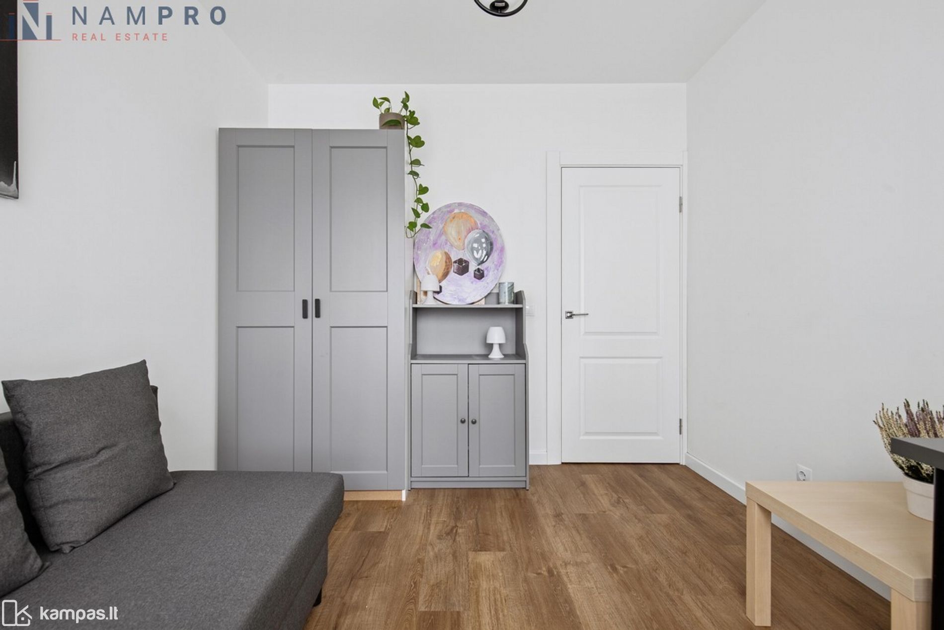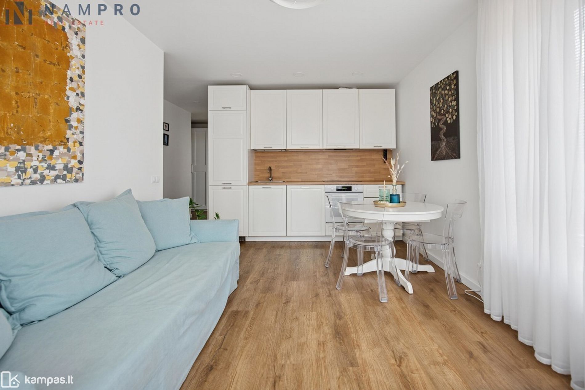 • Funkcionalus buto išplanavimas – svetainė sujungta su virtuve, miegamasis ir atskiras darbo/vaiko kambarys.