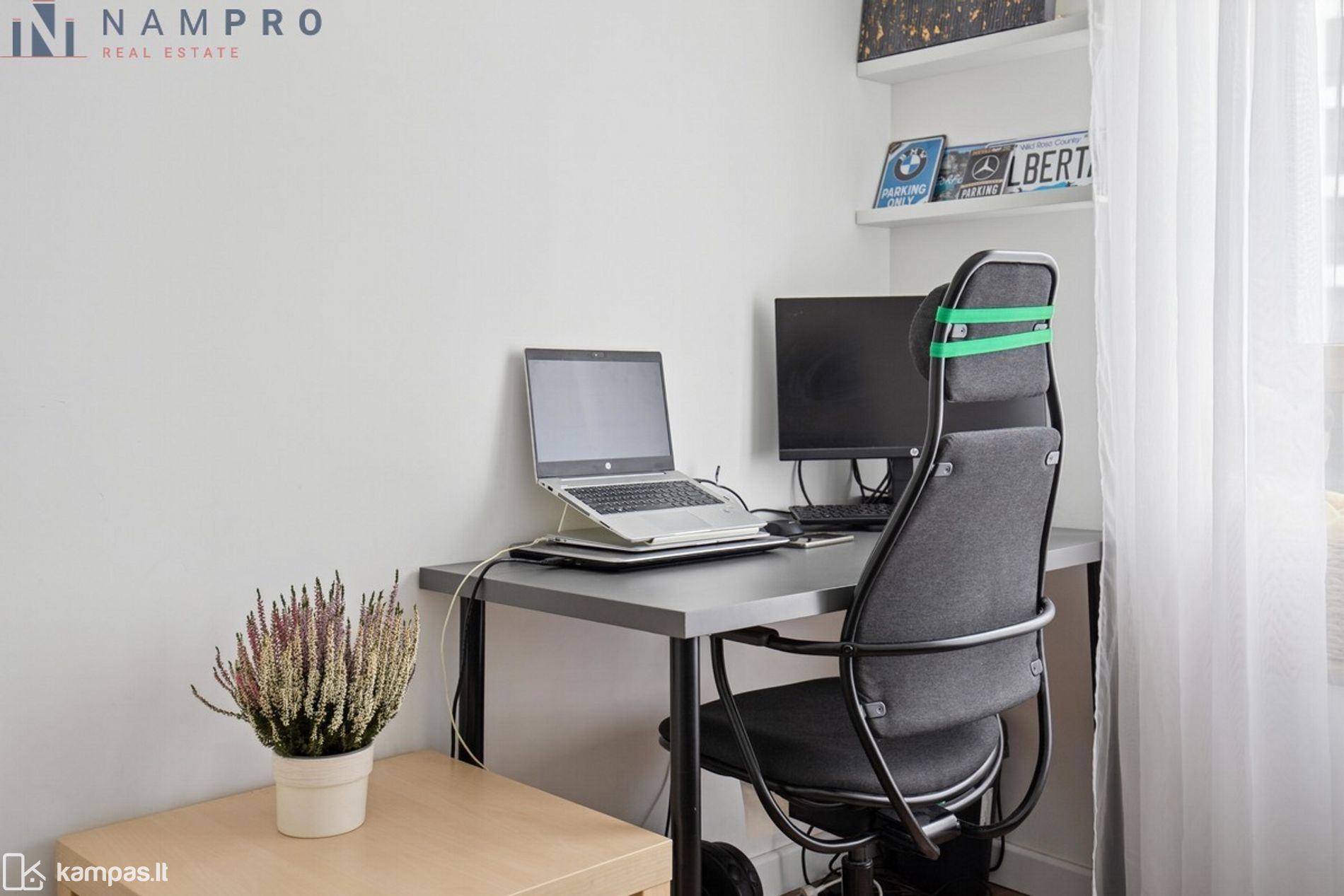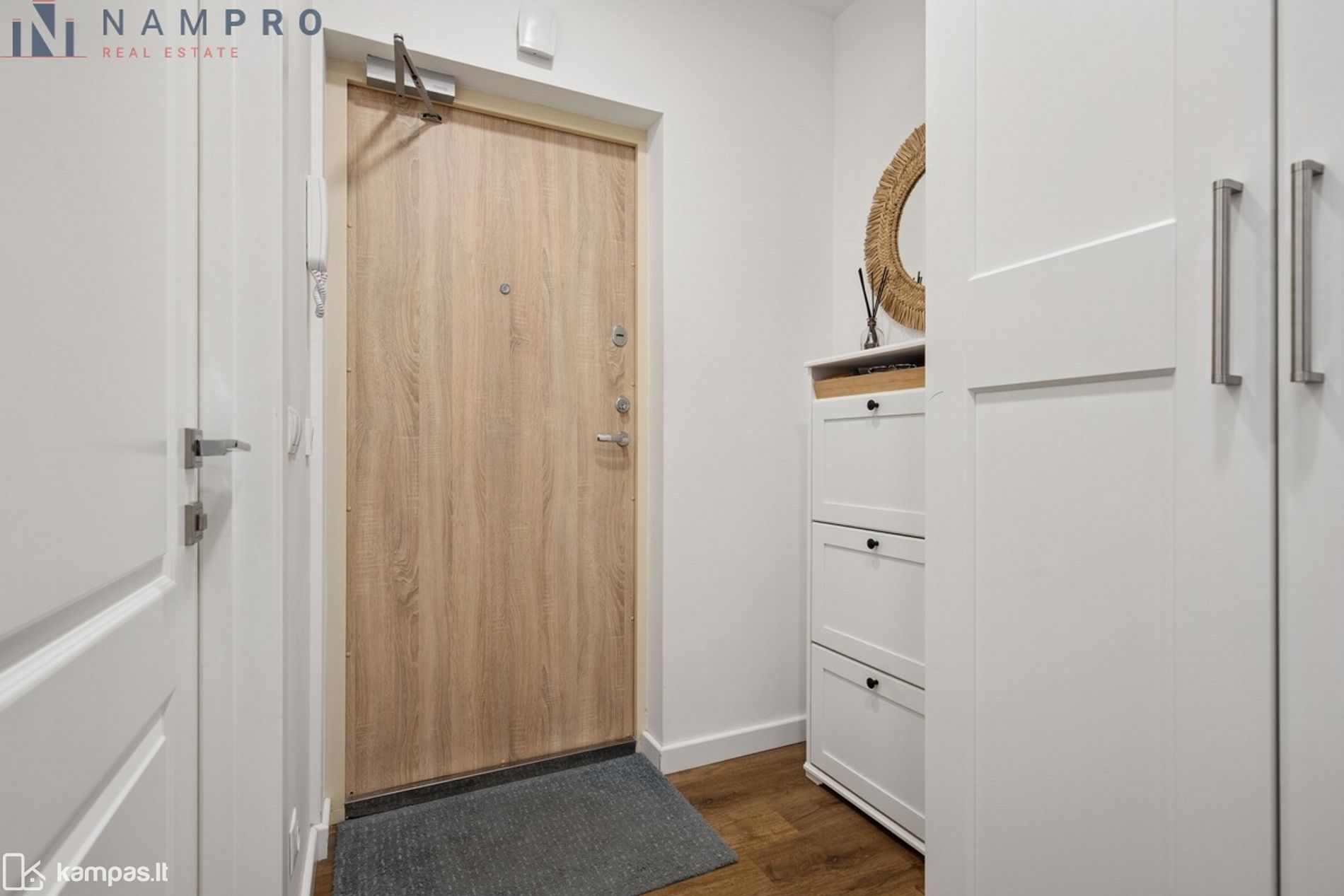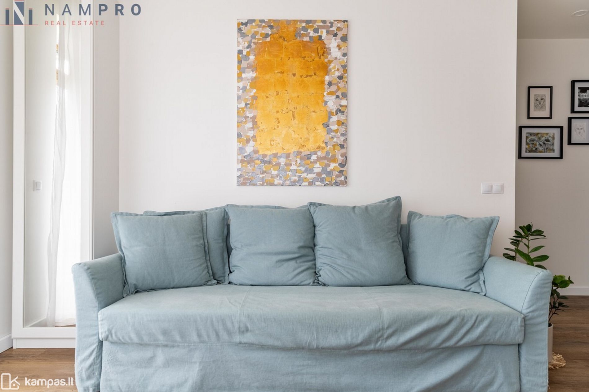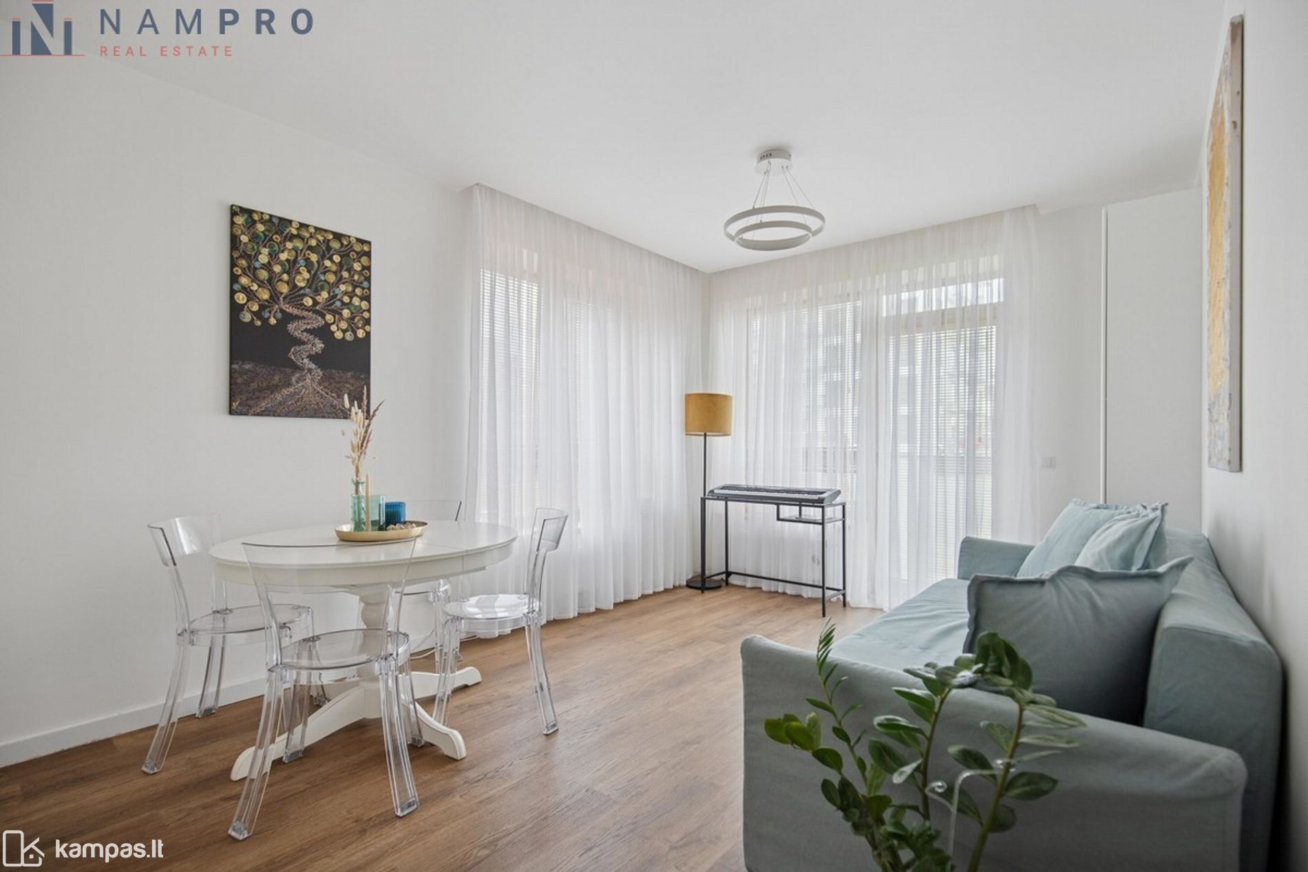• Funkcionalus buto išplanavimas – svetainė sujungta su virtuve, miegamasis ir atskiras darbo/vaiko kambarys.