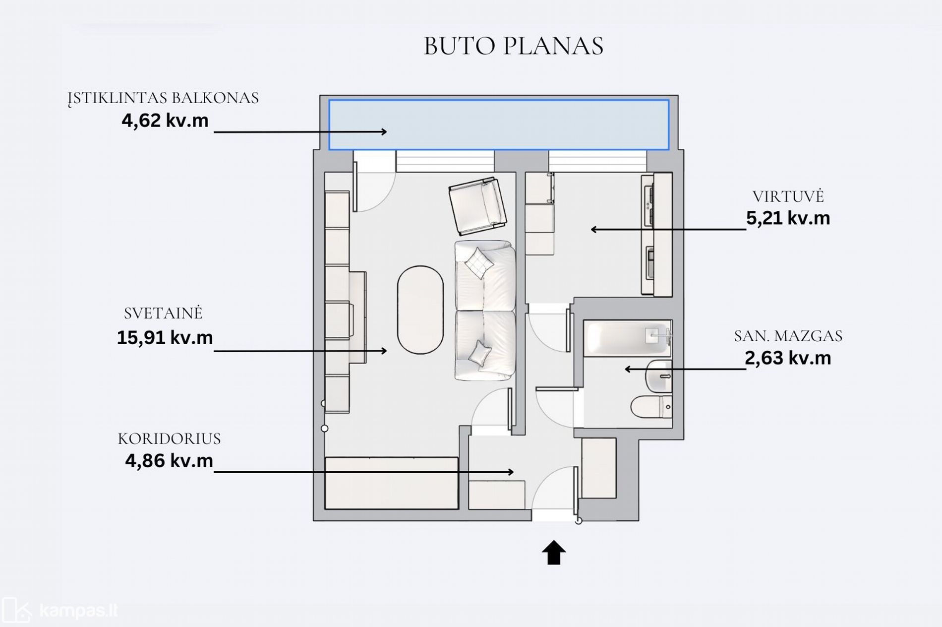 - Įstiklintas balkonas; - Šarvuotos buto durys;