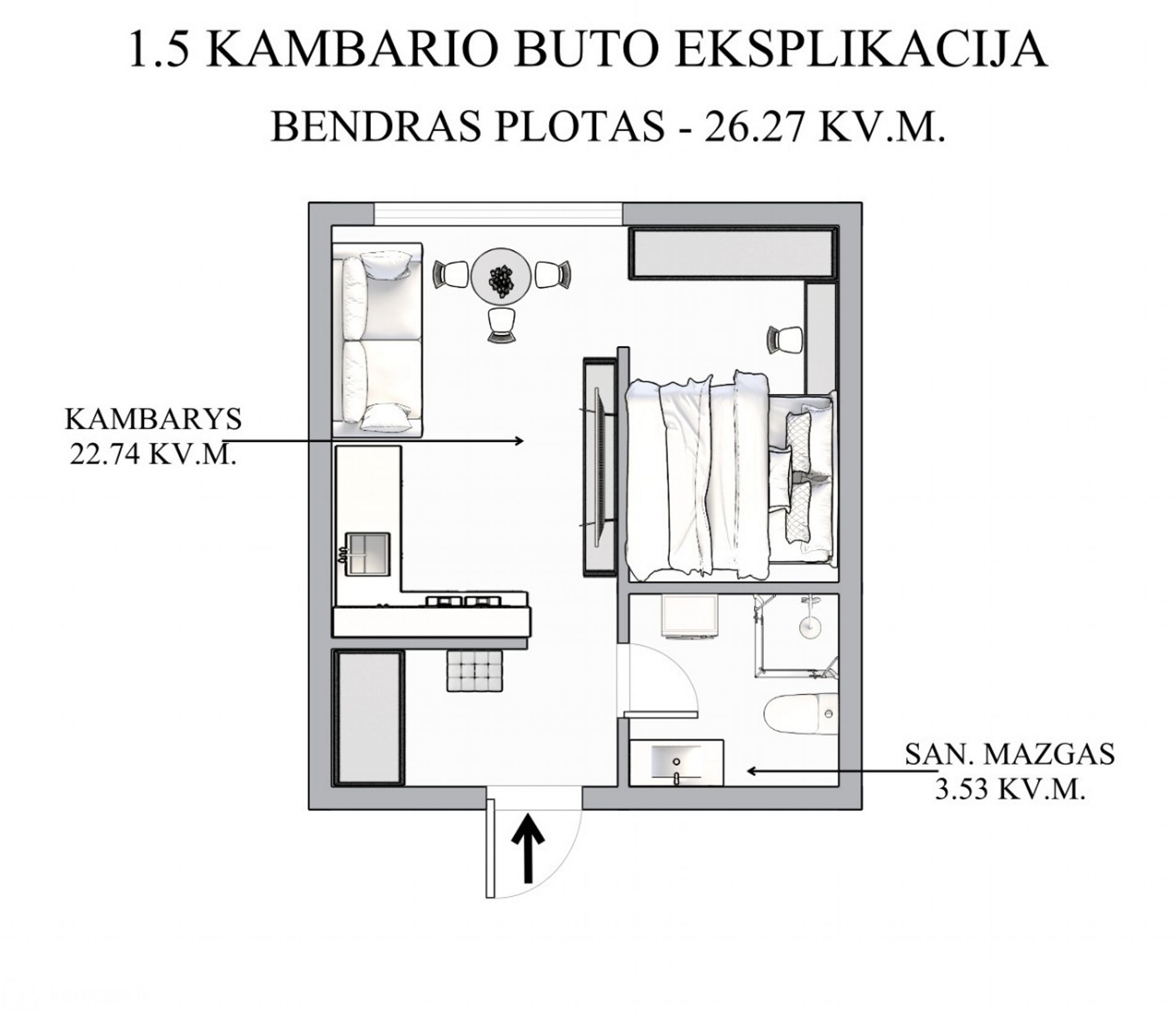 - Pilnai įrengtas butas su visais baldais ir buitine technika;