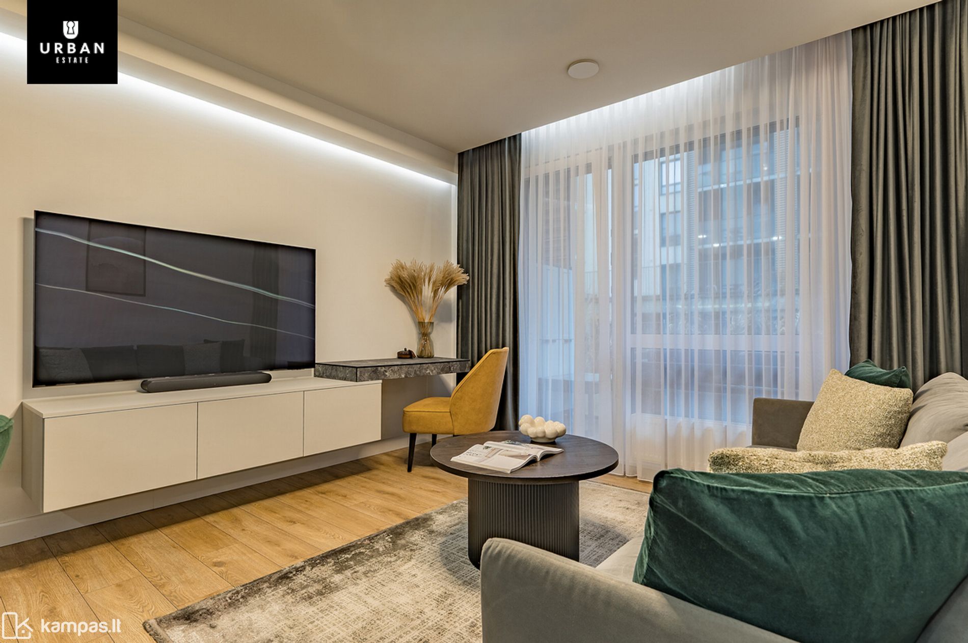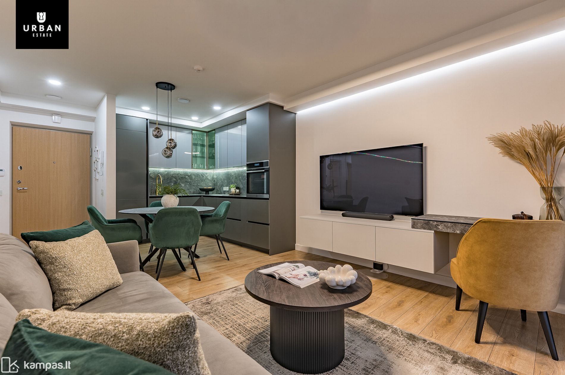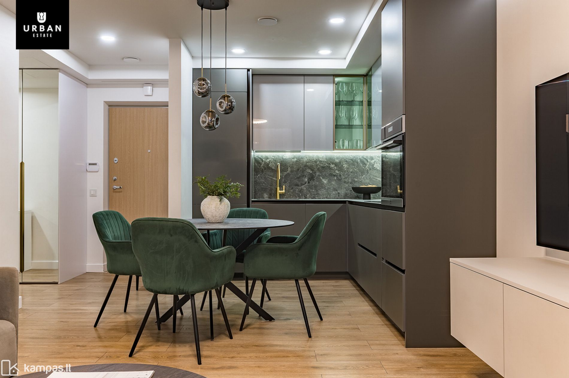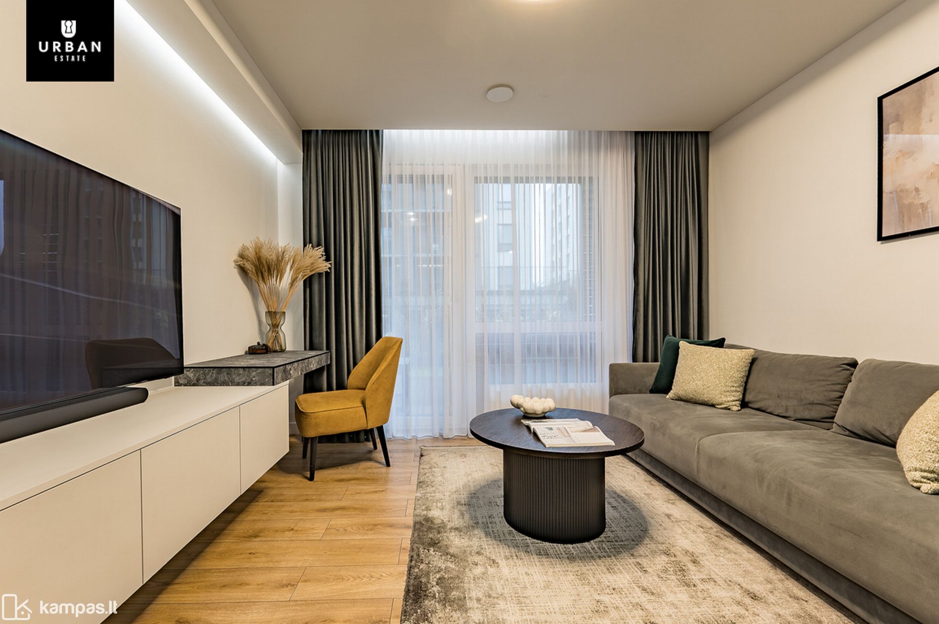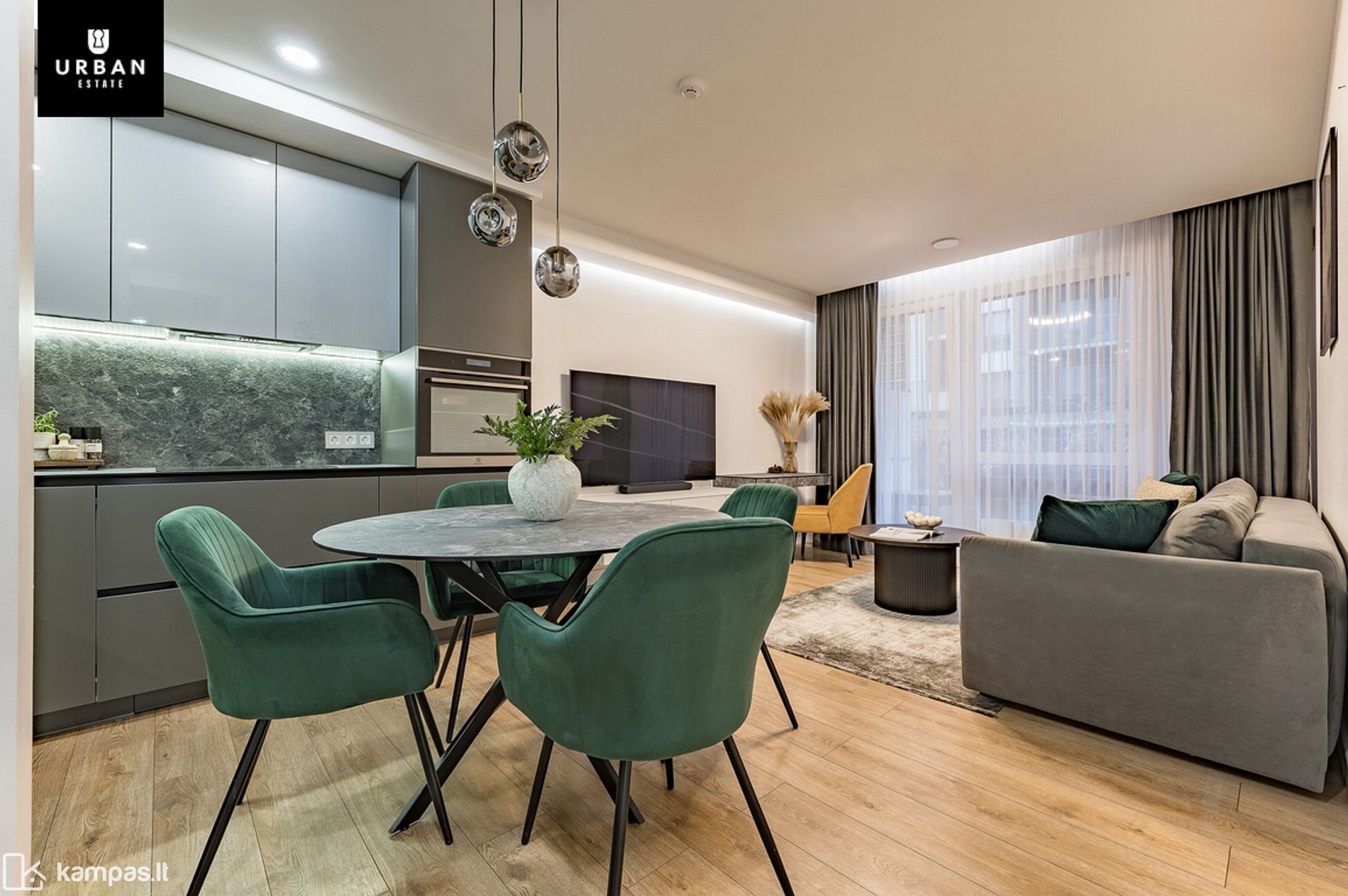 - Butas įrengtas naudojant kokybiškas medžiagas, baldus bei buitinę techniką. Modernus interjeras ir parinkti spalvų tonai puikiai įsilieja ir papildo namų jaukumo pojūtį.