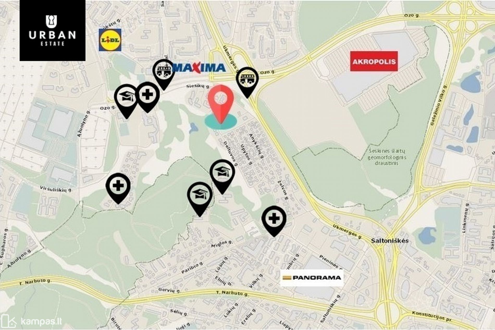 - Idealiai patogi vieta mieste, kur visus reikalingus objektus bei Senamiestį pasieksite vos per kelias minutes bet kuria transporto priemone. Aplink įsikūrę visi prekybos tinklai, pramogų ir laisvalaikio centrai, mokymo bei gydymo įstaigos.