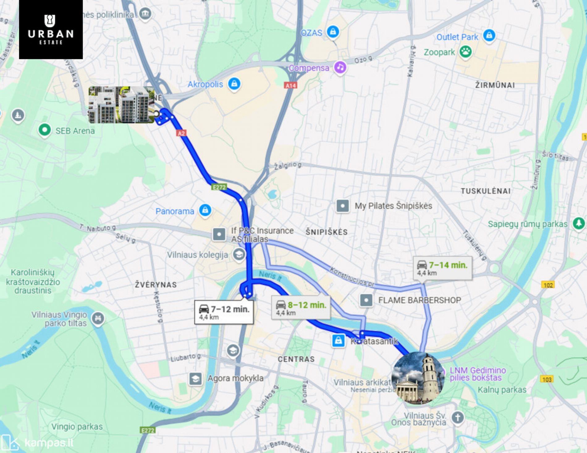 ~3.35 km iki centro;