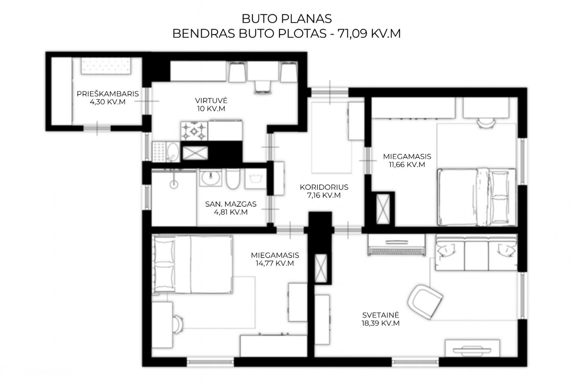 Šis butas skirtas tiems, kurie nori gyventi miesto širdyje, tačiau vertina privatumą, nuosavą erdvę ir natūralų gamtos artumą.