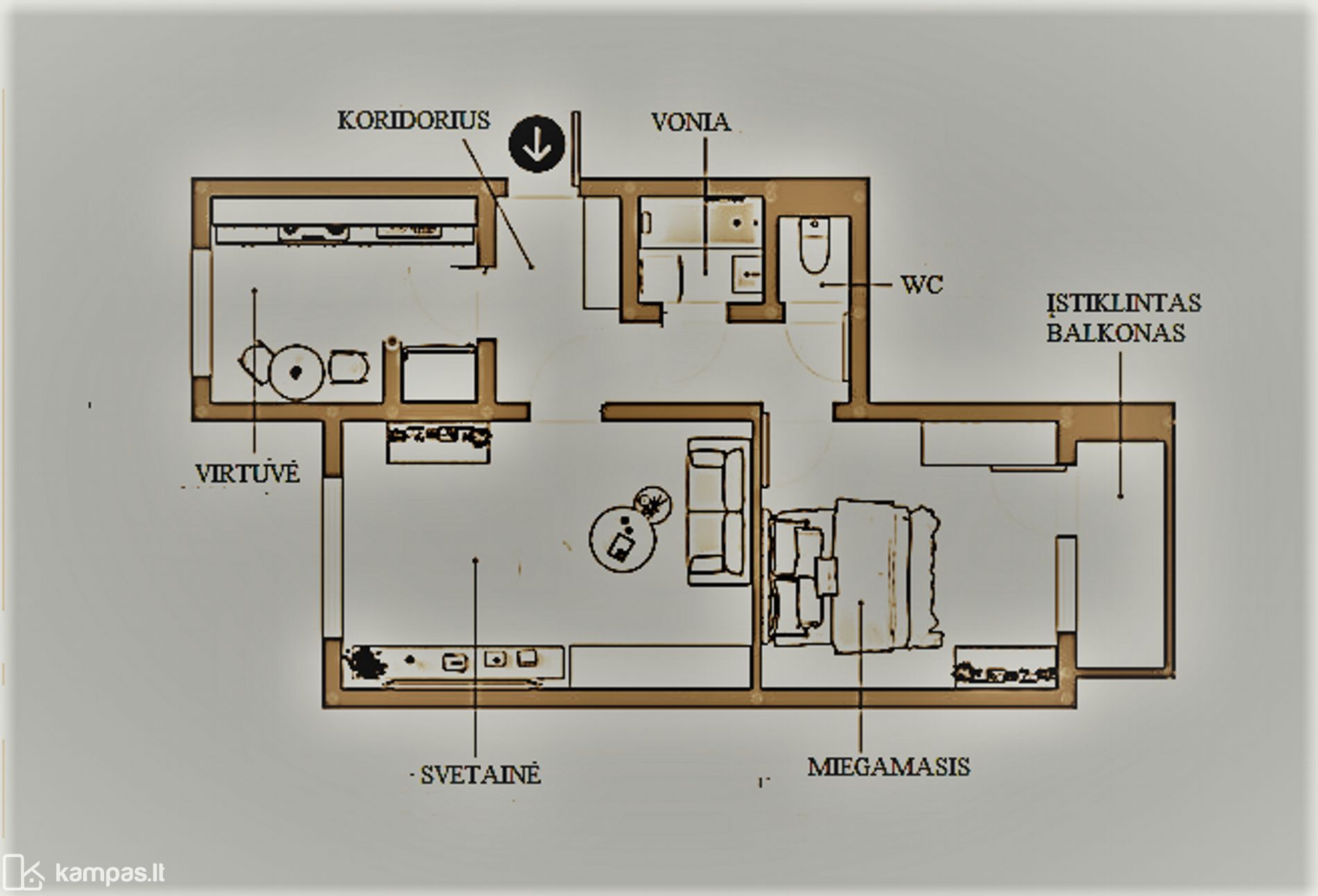 Butas 2-jų kambarių, 4 aukšte iš 5;