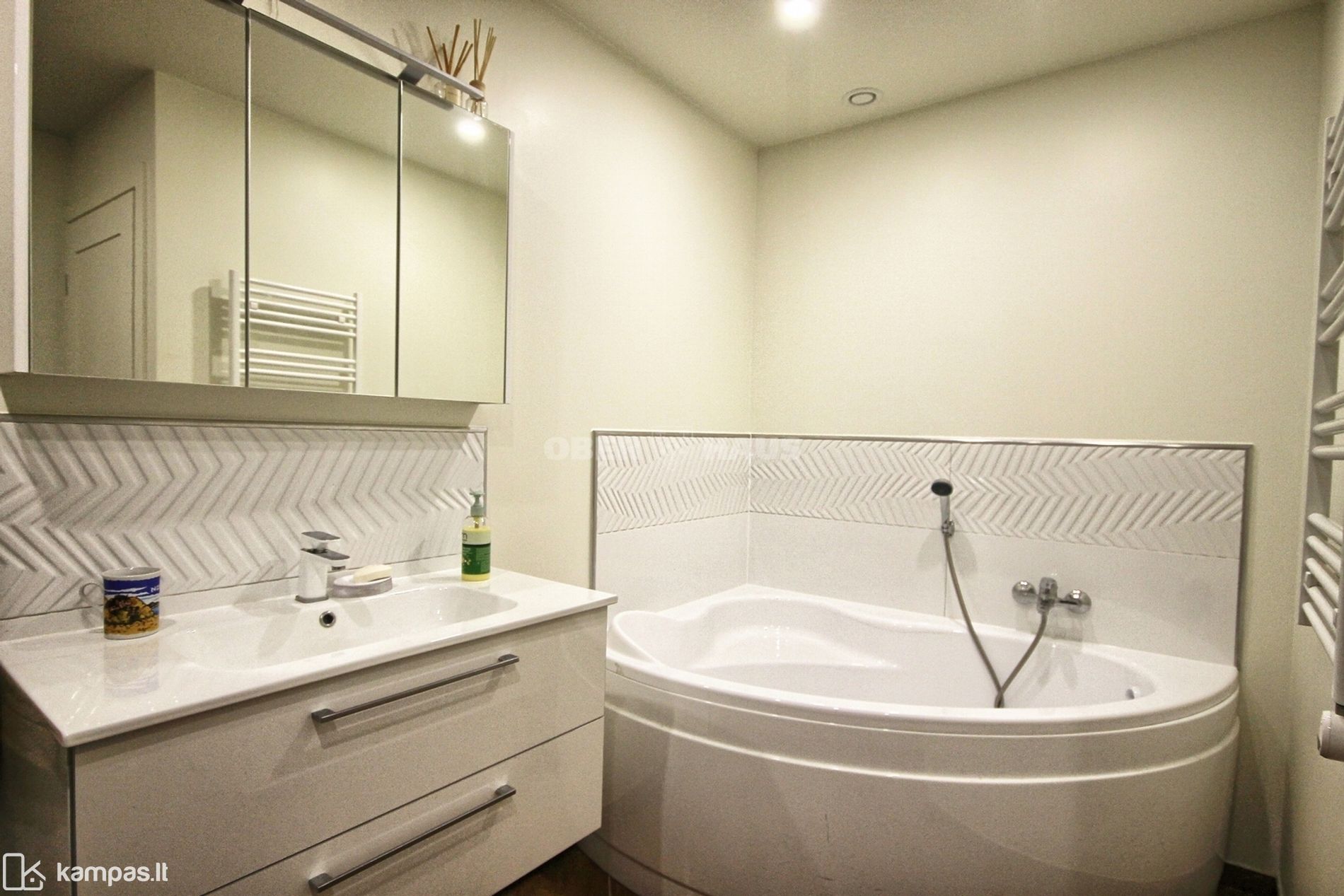 Butas yra 5 aukšte iš 5. Bendras plotas – 91 kv. m. Nuomojamas su visais baldais ir buitine technika – įsikelkite be papildomų rūpesčių.