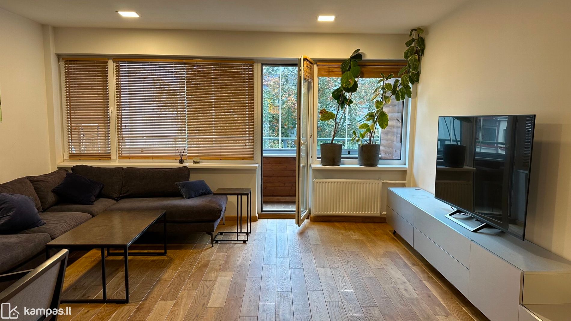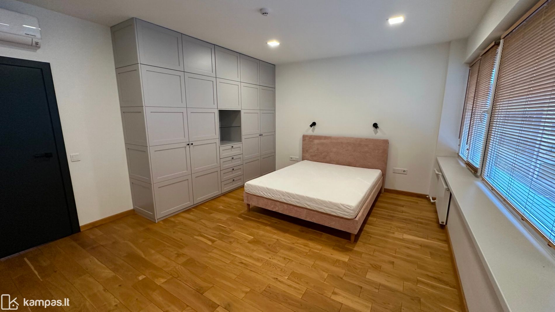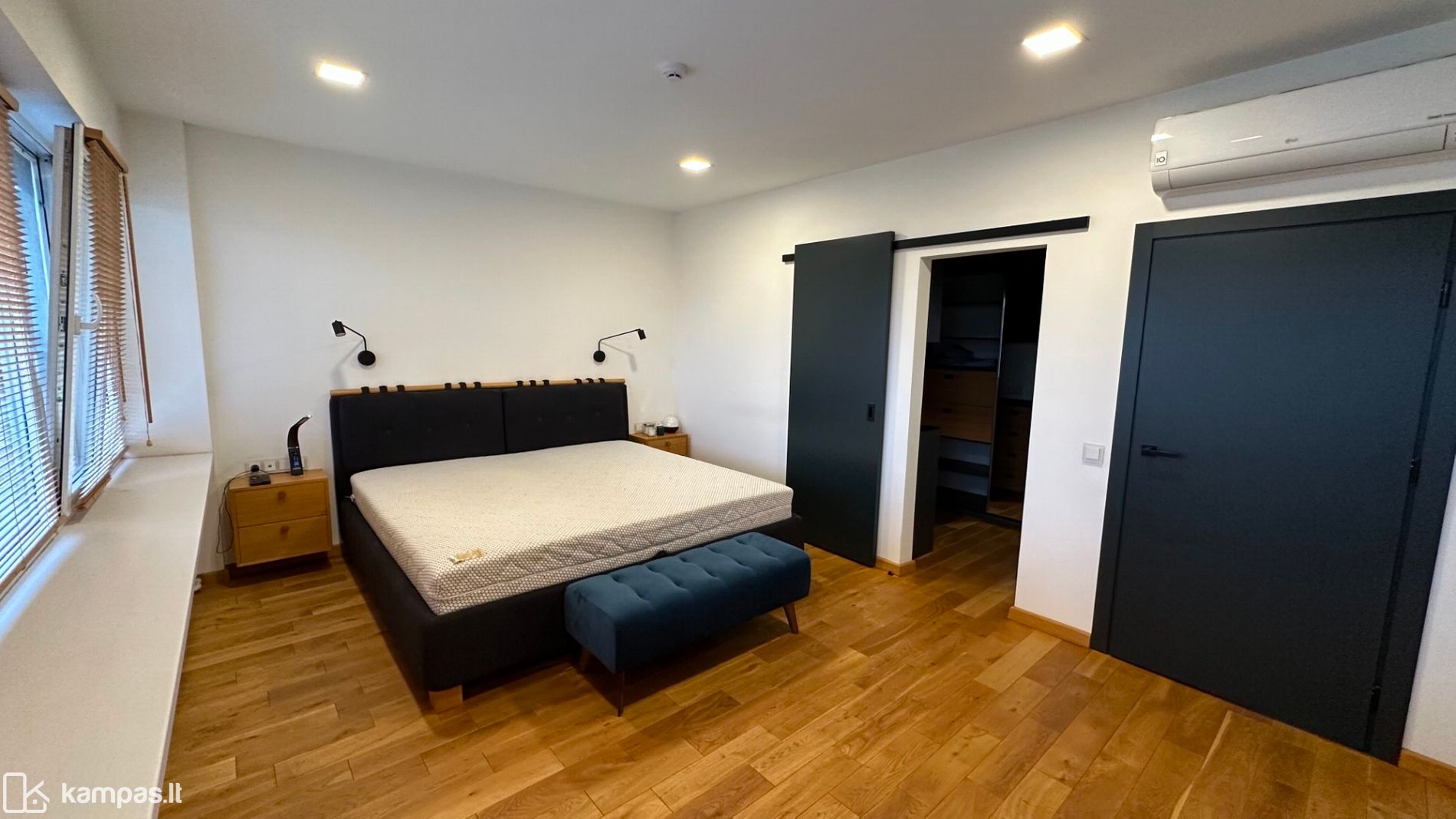 Butas erdvus – net 95 kv. m ploto, 4 aukšte iš 5. Viduje patogus išplanavimas: svetainė su poilsio zona, miegamasis, vaiko kambarys, atskira rūbinė. Grindys – natūralus parketas, butas nuomojamas su visais reikalingais baldais ir buitine technika. Kondicionierius, skalbyklė, džiovyklė.