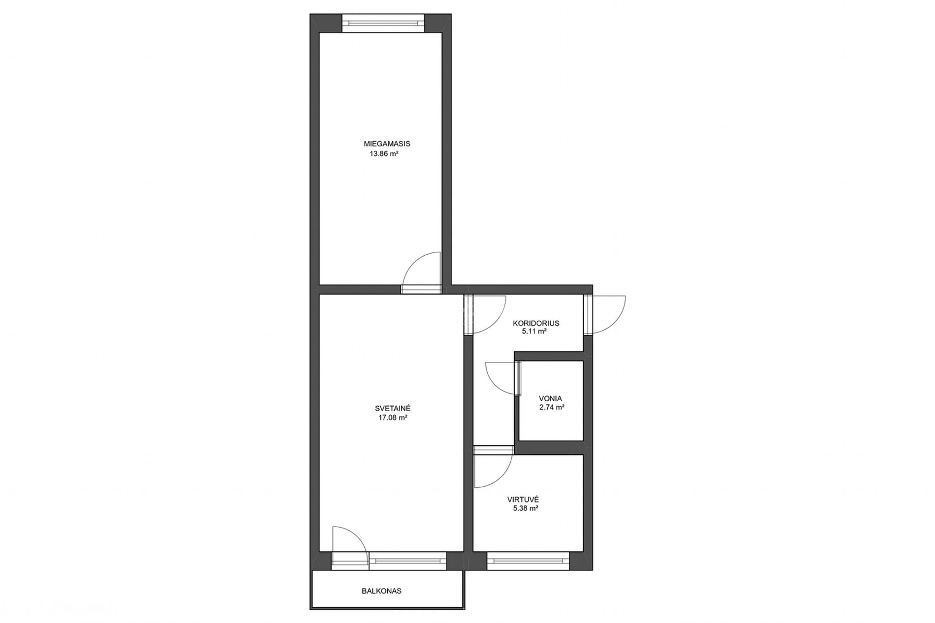 - Plotas: 44.17 m²