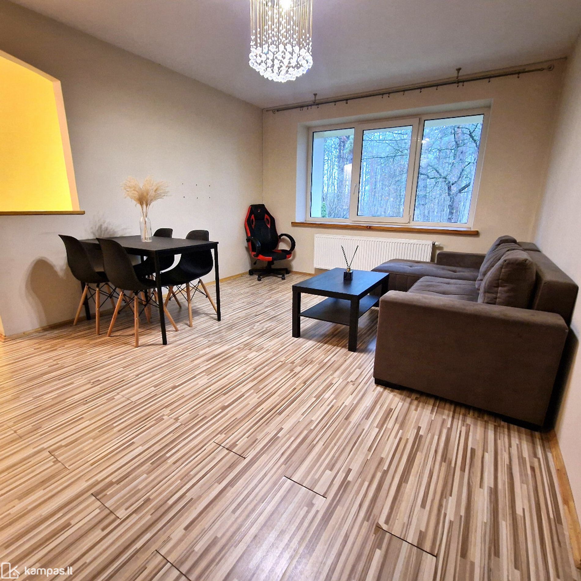 Nuomojamas 2 kambarių butas Romainiuose, šalia miško. Butas tvarkingas. Namas renovuotas, dujinis šildymas. Su baldais. Namą administruoja bendrija. Pirmas aukštas