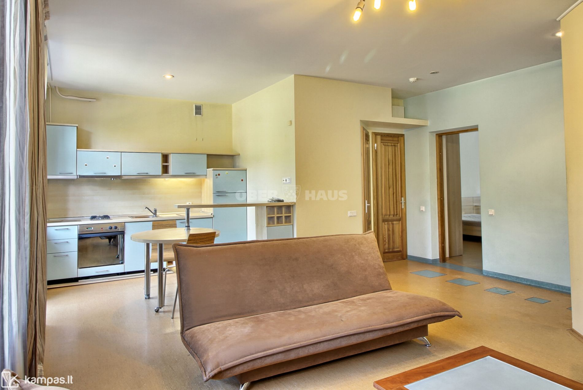 2 kambariai: vienas miegamasis, svetaine su virtuve.