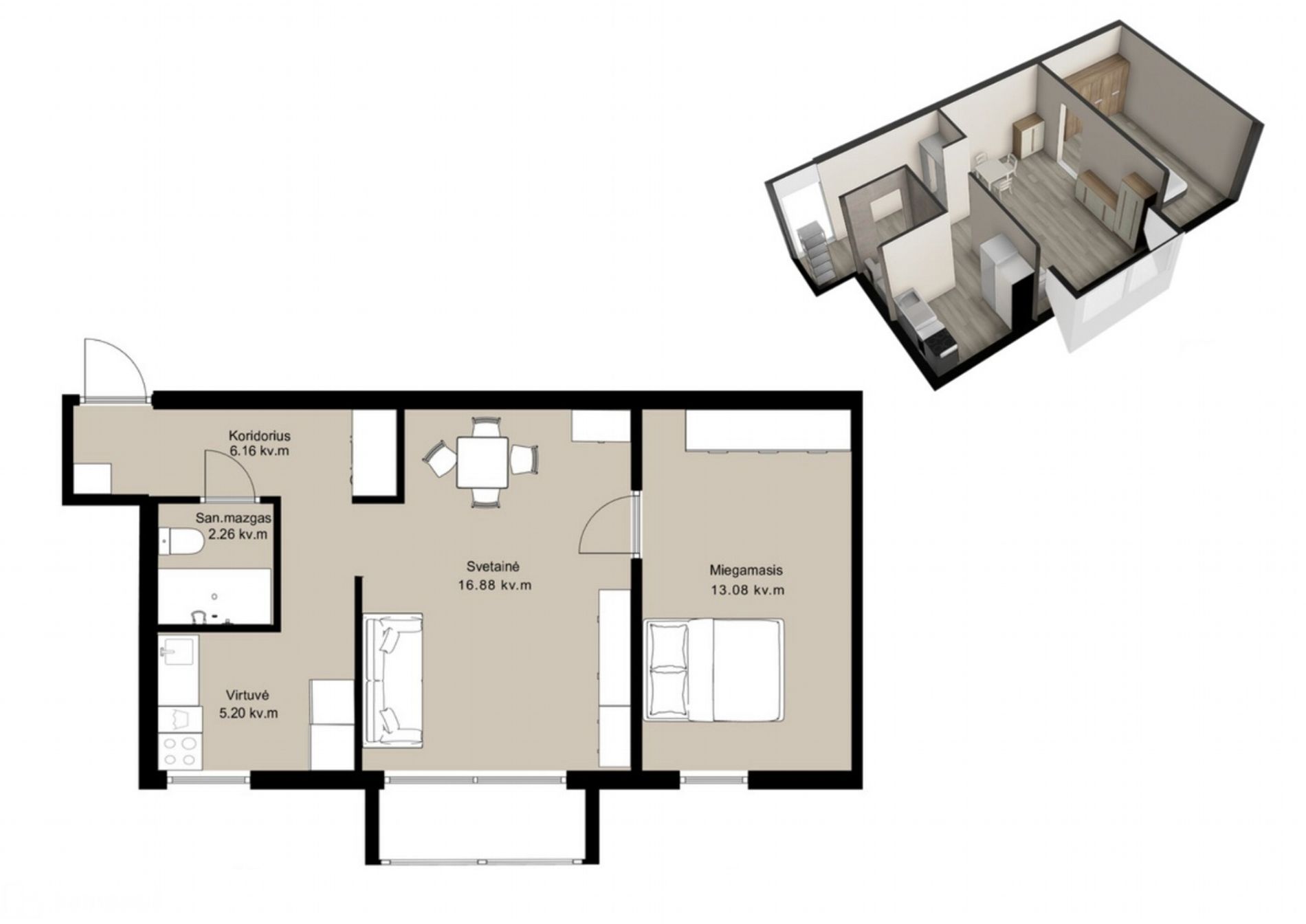 Nuomos kaina: 460 eur + komunaliniai mok.