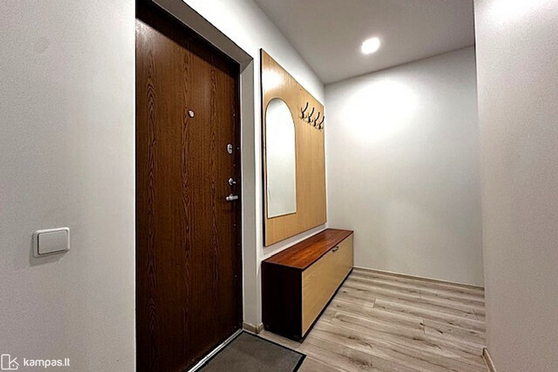 - Durys: įėjimo – šarvo, vidaus – medinės su matinio stiklo dekoru;