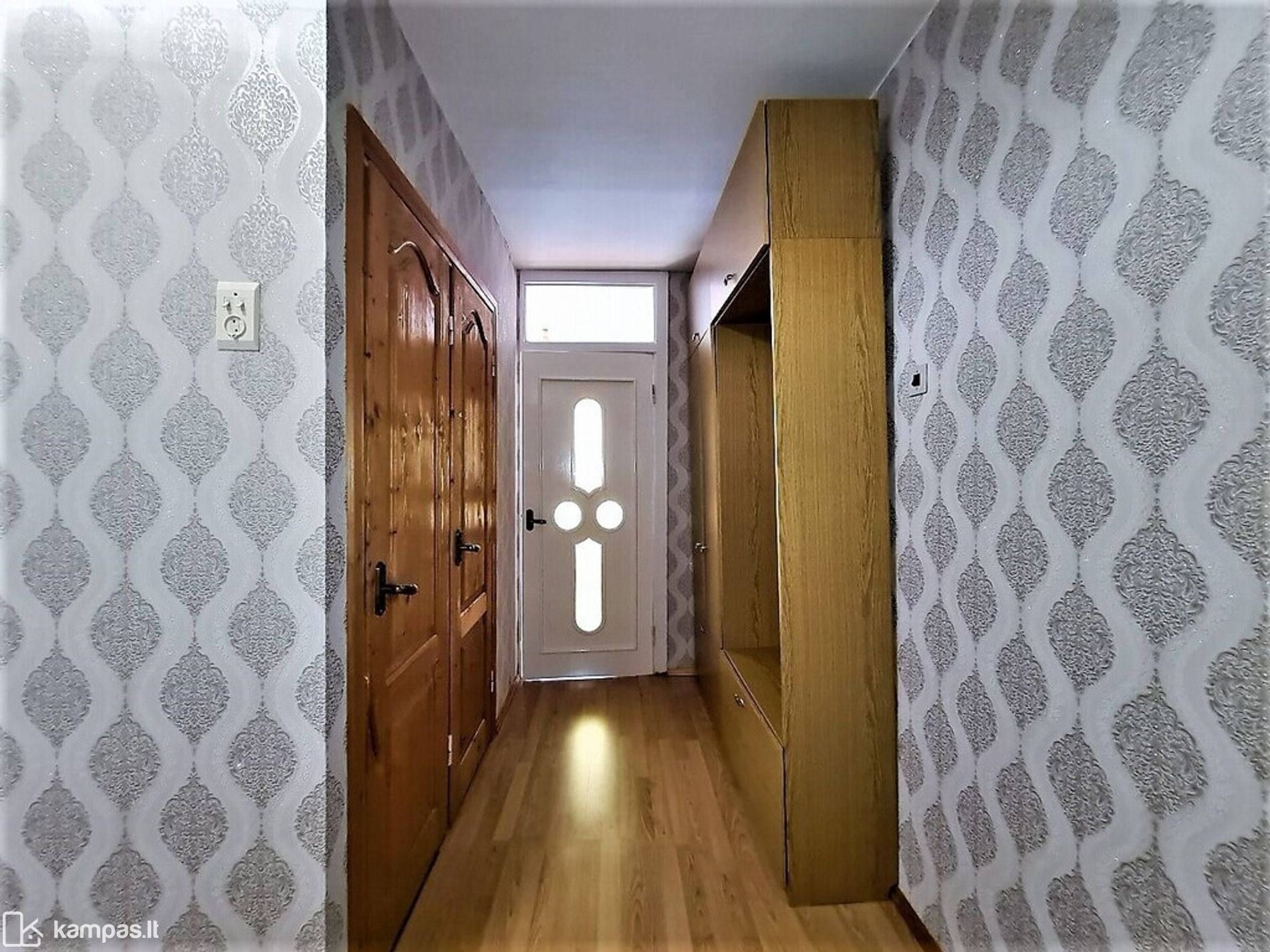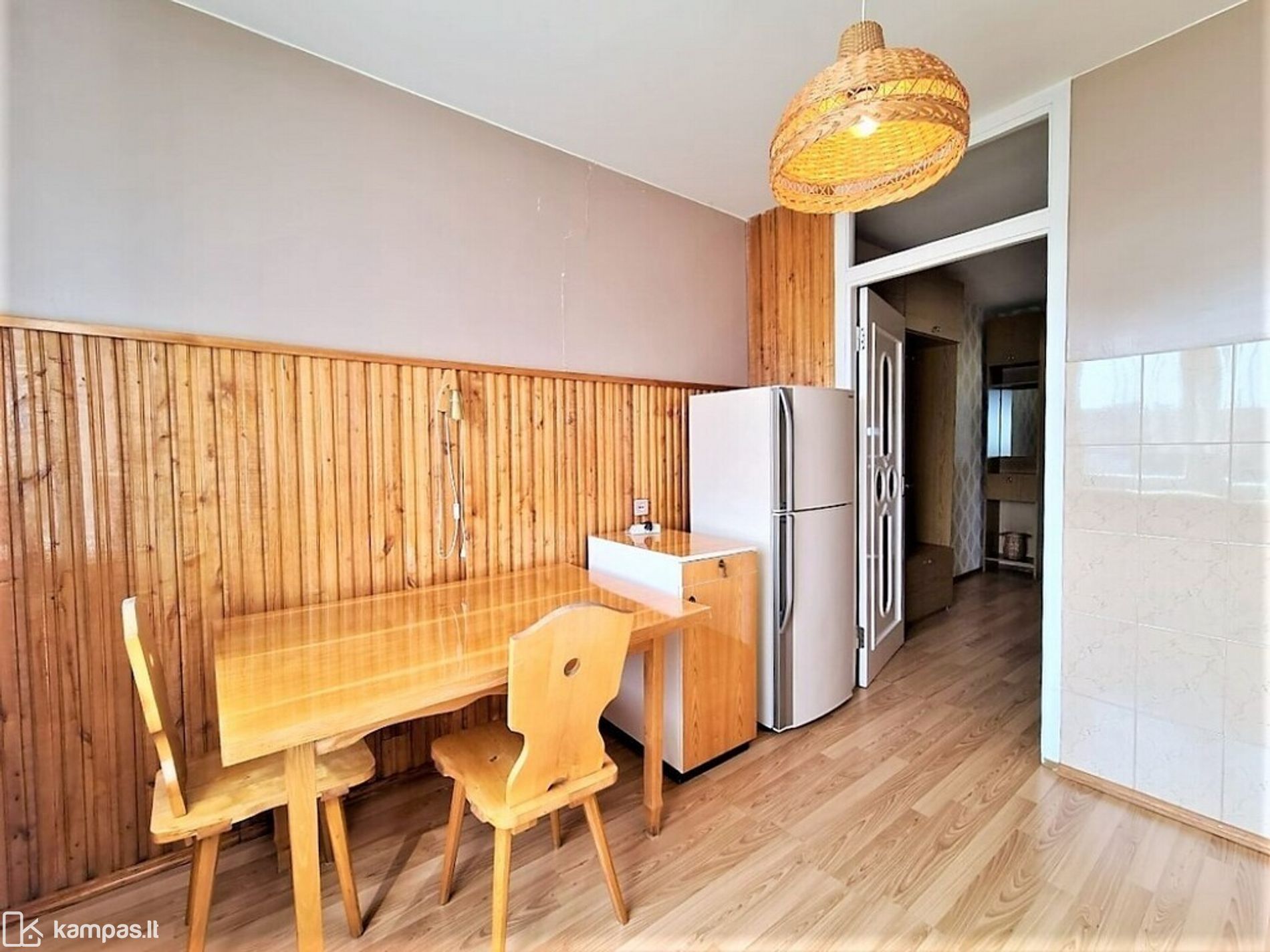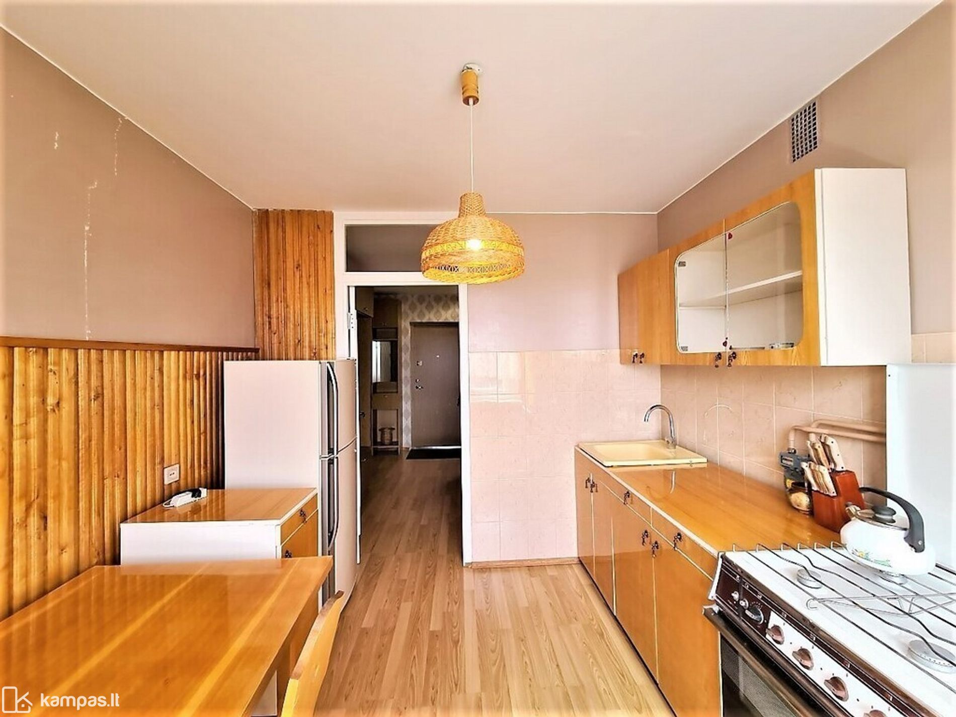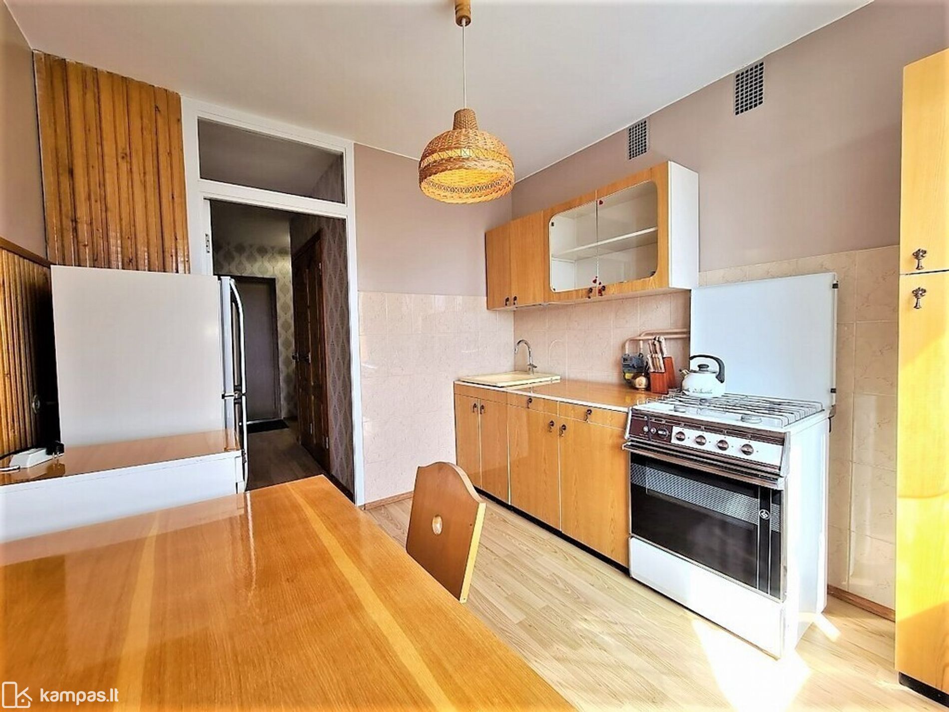 – Sienos – tapetai, virtuvėje – plytelės ir medinės lentelės, vonioje ir tualete – plytelės;