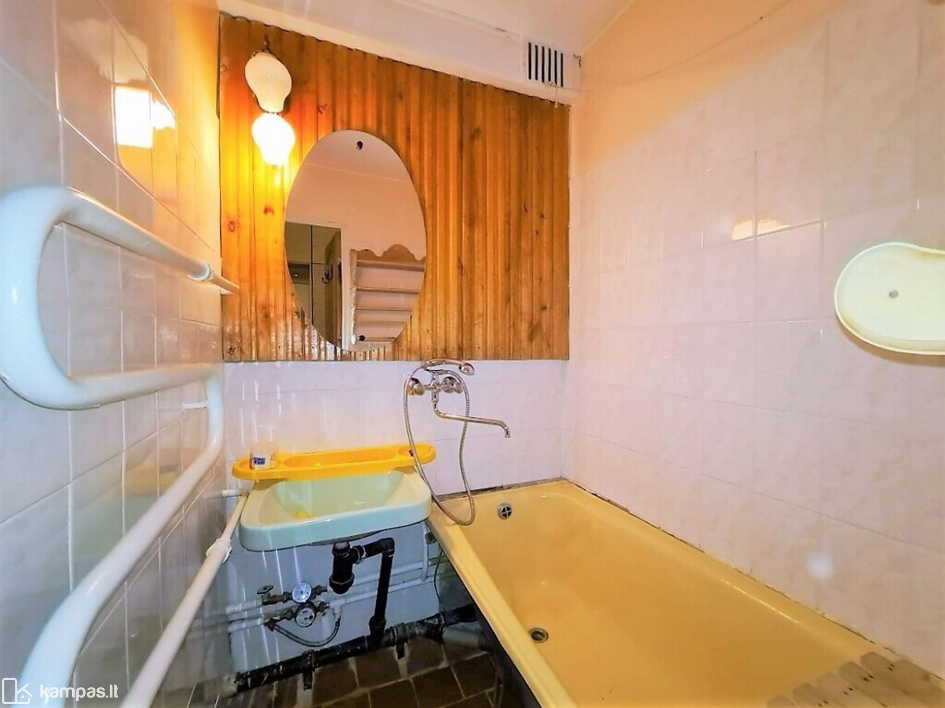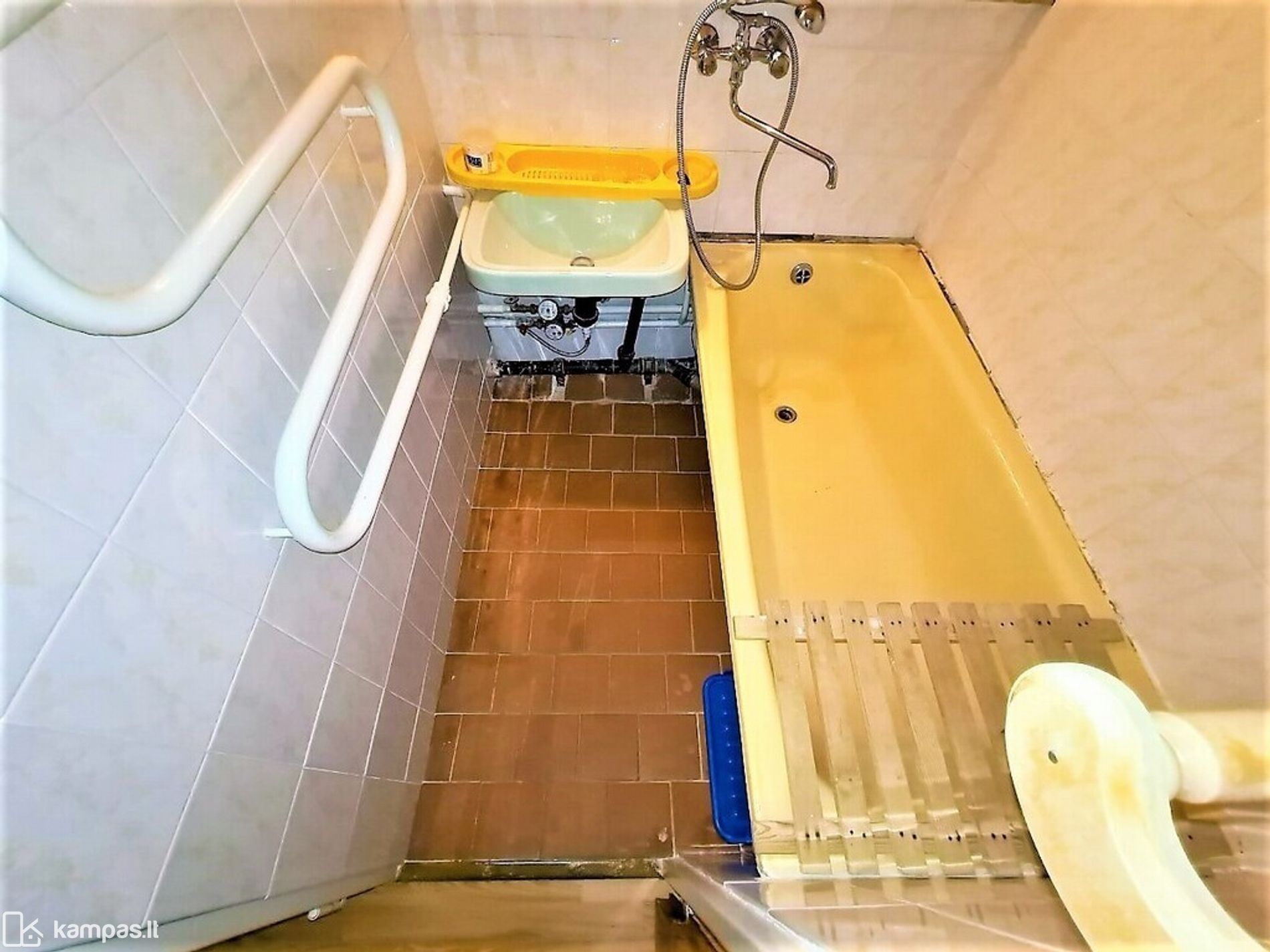 – Grindys – laminatas, vonioje ir tualete – plytelės;