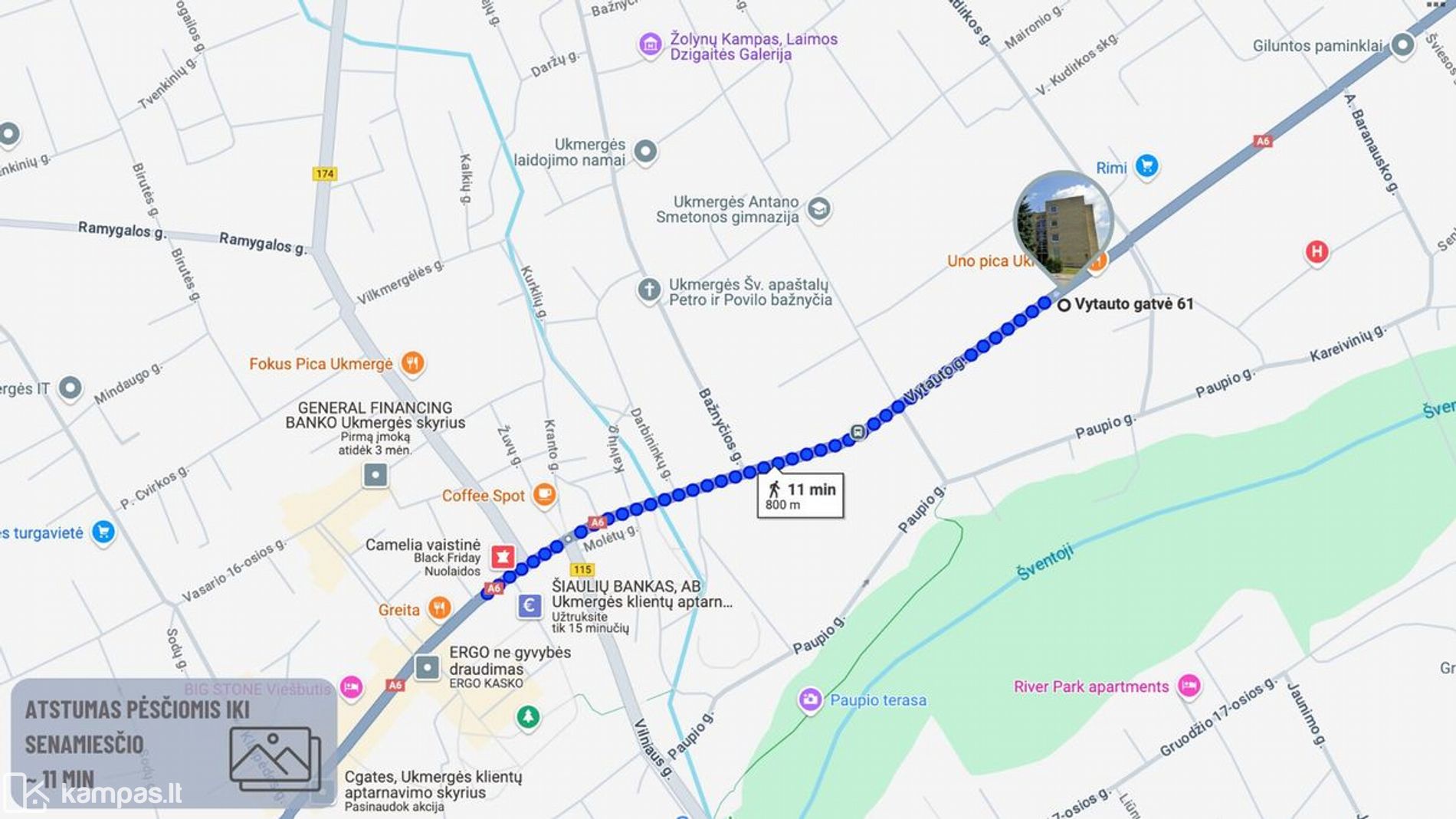 ➢ Iki miesto centro vos 1 km arba ~ 10 min pėsčiomis