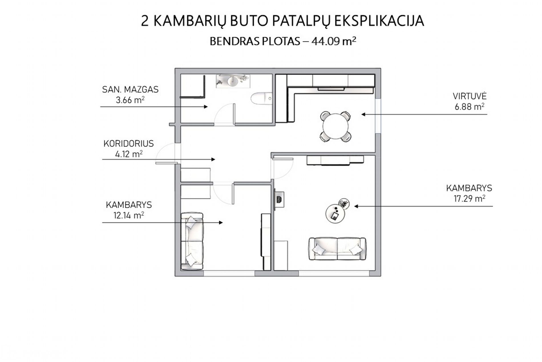 • Bendras plotas - 44.09 kv.m;