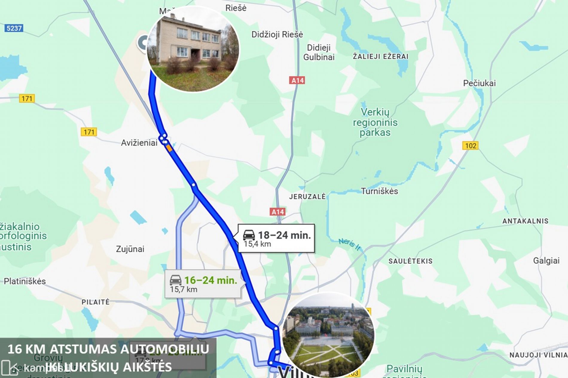 ~16 km atstumas iki miesto centro.