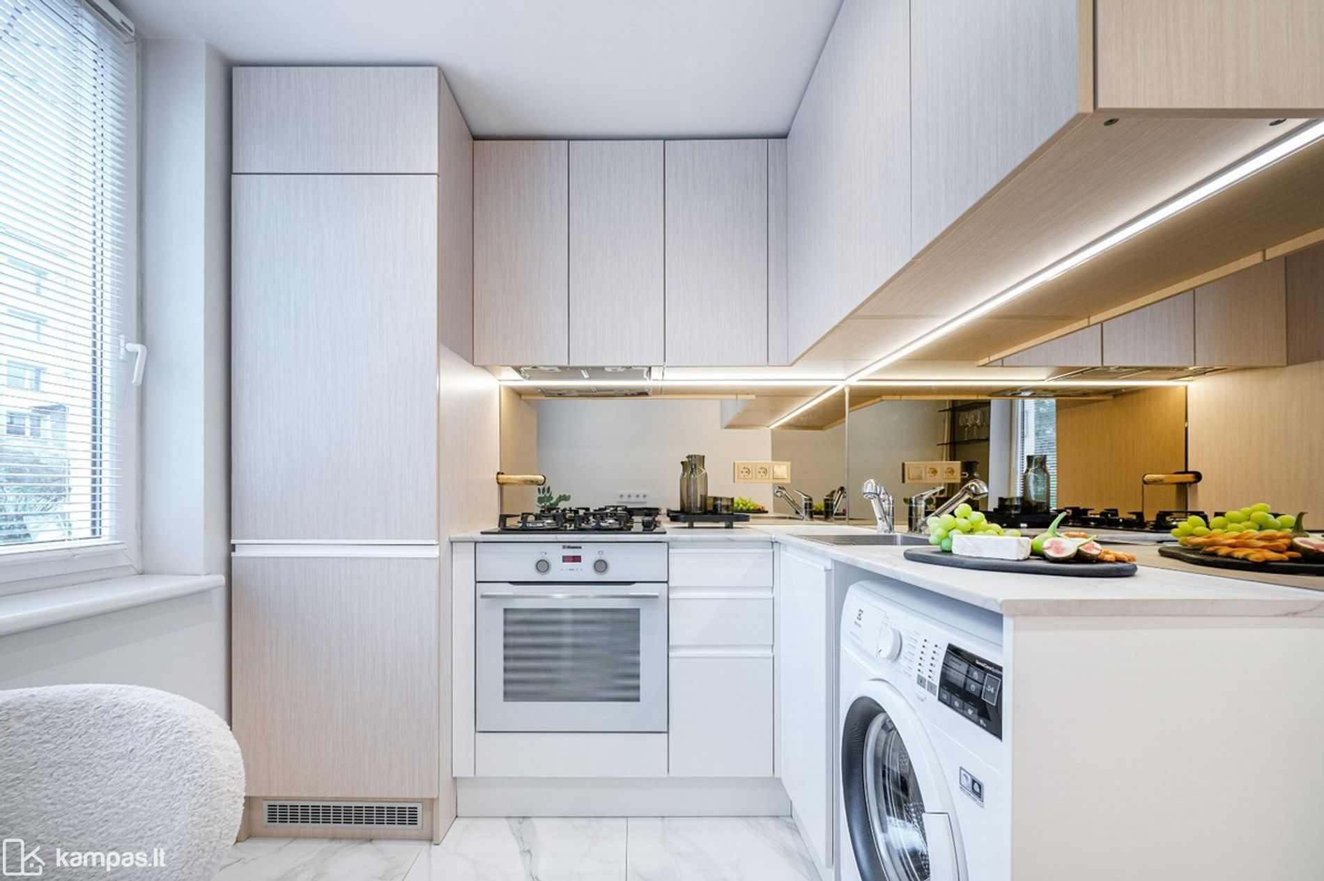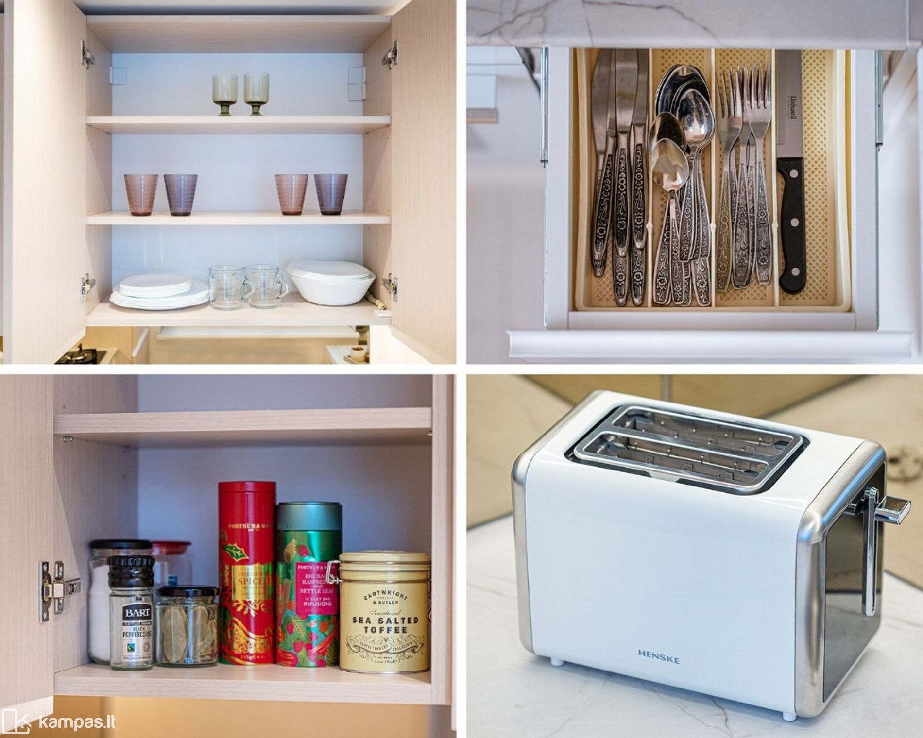 • Nuomojamas su kokybiškais baldais ir nauja buitine technika (skalbimo mašina, šaldytuvas su šaldikliu, gartraukis, 2 plokščiaekraniai televizoriai ir kt.)